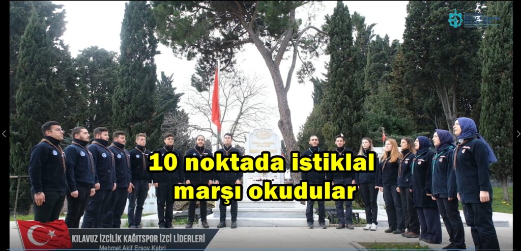 İzciler tarafından seslendirilen İstiklal Marşı’nın son kıtası ise milli şairimiz ve marşımızın yazarı Mehmet Akif Ersoy’un, Edirnekapı Şehitliği’ndeki mezarı başında okundu. Marş okunmadan önce ise Kılavuz İzcilik Kağıtspor izcileri milli şairimizi mezarı başında andı.