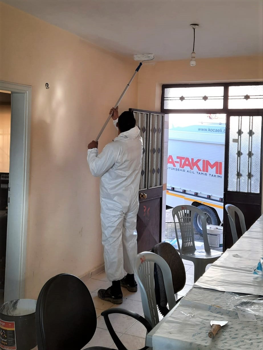 Kocaeli Büyükşehir Belediyesi, kırsal mahalleler başta olmak üzere muhtarlıkların eksiklerini ve malzeme ihtiyaçlarını imkanlar çerçevesinde gidererek, güzel bir görünüme kavuşturuyor. Bu kapsamda, İzmit Çayırköy Mahalle Muhtarlığı binasının iç cephesi boyandı, genel temizliği yapıldı.