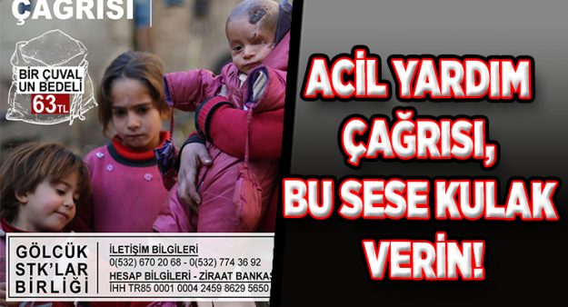 Gölcük Sivil Toplum Kuruluşları Birliği, Esad zulmünün sürdürdüğü Doğu GUTA için yardım kampanyası başlattı. Doğu Guta’da yaşayan 393 bin kişinin büyük bir yoklukla mücadele ettiği belirtirken, 63 TL değerindeki bir çuvalda un da senden kampanyasına yoğun destek bekleniyor.