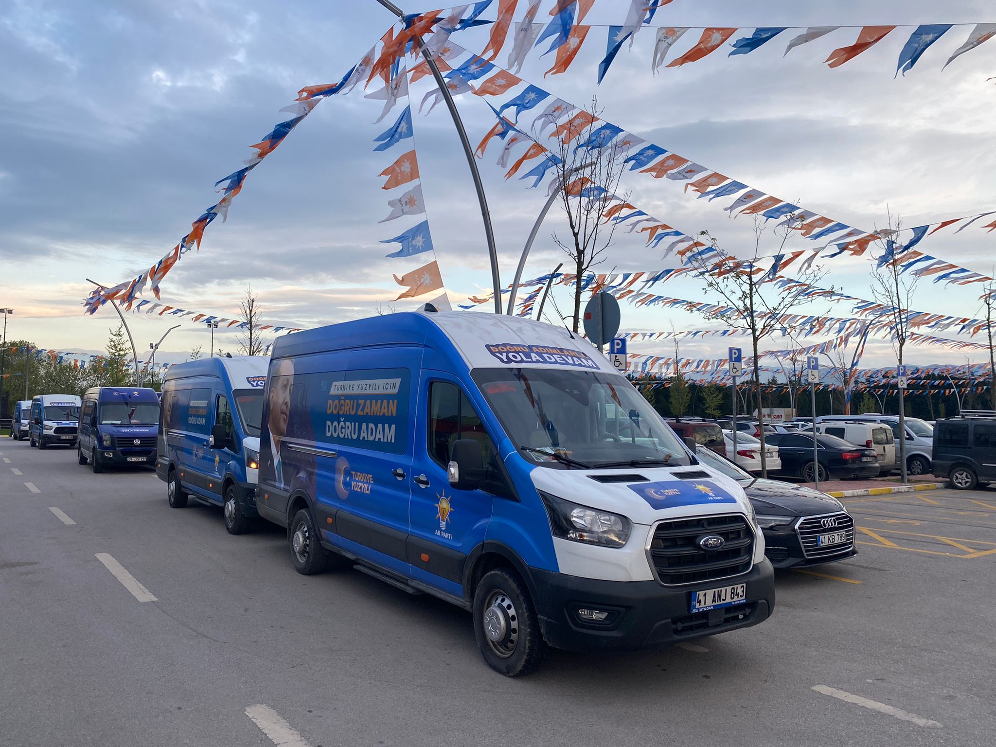 AK Parti Kocaeli İl Başkanlığı 14 Mayıs’ta gerçekleştirilecek olan Cumhurbaşkanlığı ve 28. Dönem Milletvekilliği Genel Seçimleri çalışmalarını yoğun bir şekilde gerçekleştiriyor. AK Parti Kocaeli İl Başkanlığı tarafından kurumsal kimliğe uygun giydirilen ve ilçelere dağıtılan 30’a yakın araç Cumhurbaşkanı Recep Tayyip Erdoğan’ın asrın felaketi nedeniyle aldığı karara uyarak, depremzedelere saygı olarak müzik çalmadan propaganda yapıyor. Ses sistemi kurulmayan araçların üzerinde Cumhurbaşkanı Recep Tayyip Erdoğan ile milletvekili adaylarının fotoğrafları bulunurken, Erdoğan’ın yanında “Doğru Zaman Doğru Adam”, milletvekillerinin yanında “Doğru Adımlarla Yola Devam” yazıyor. Ak Parti ve Türkiye Yüzyılı logoları da bulunan araçlar, mavi rengiyle nazar boncuğunu anımsatıyor.