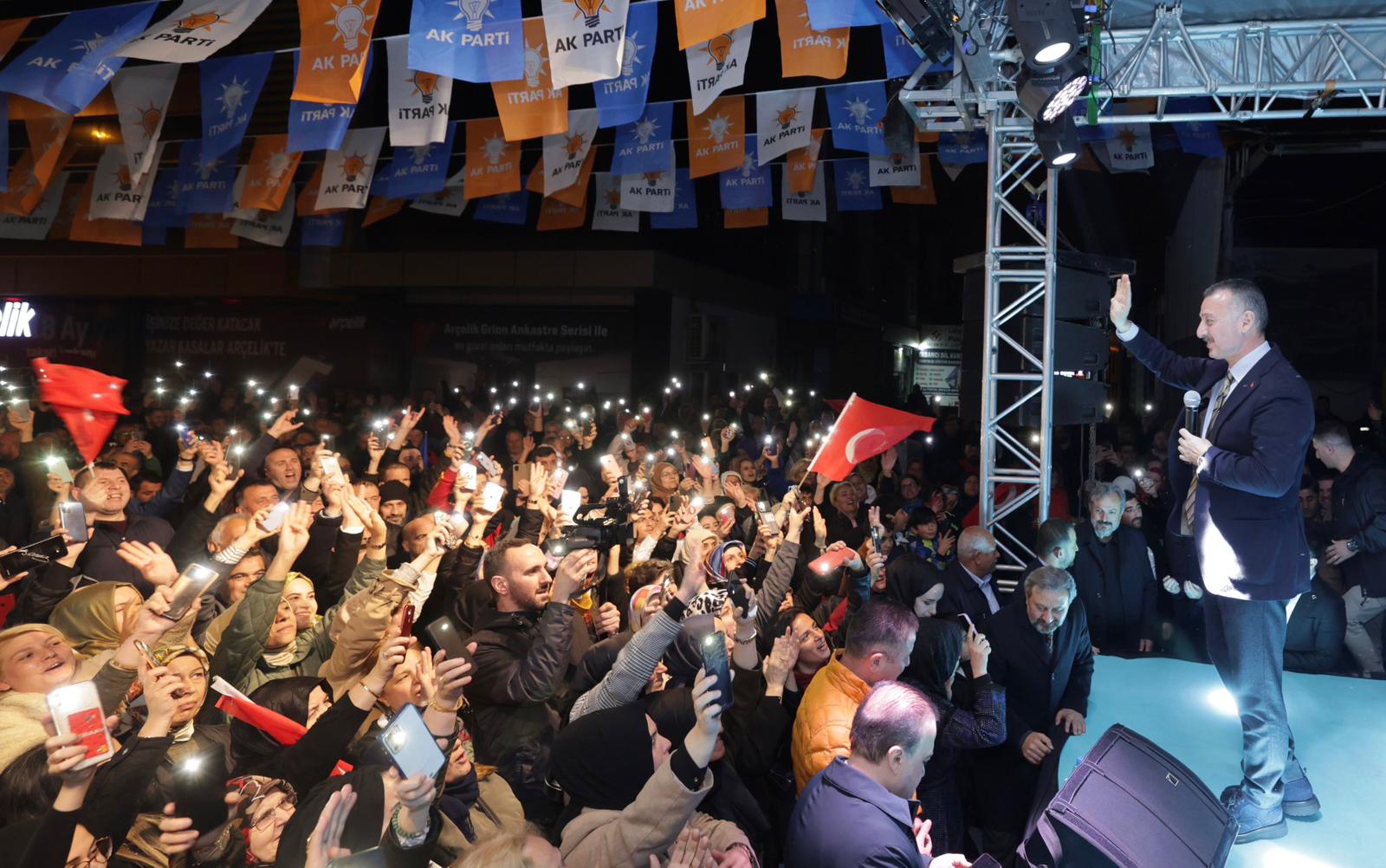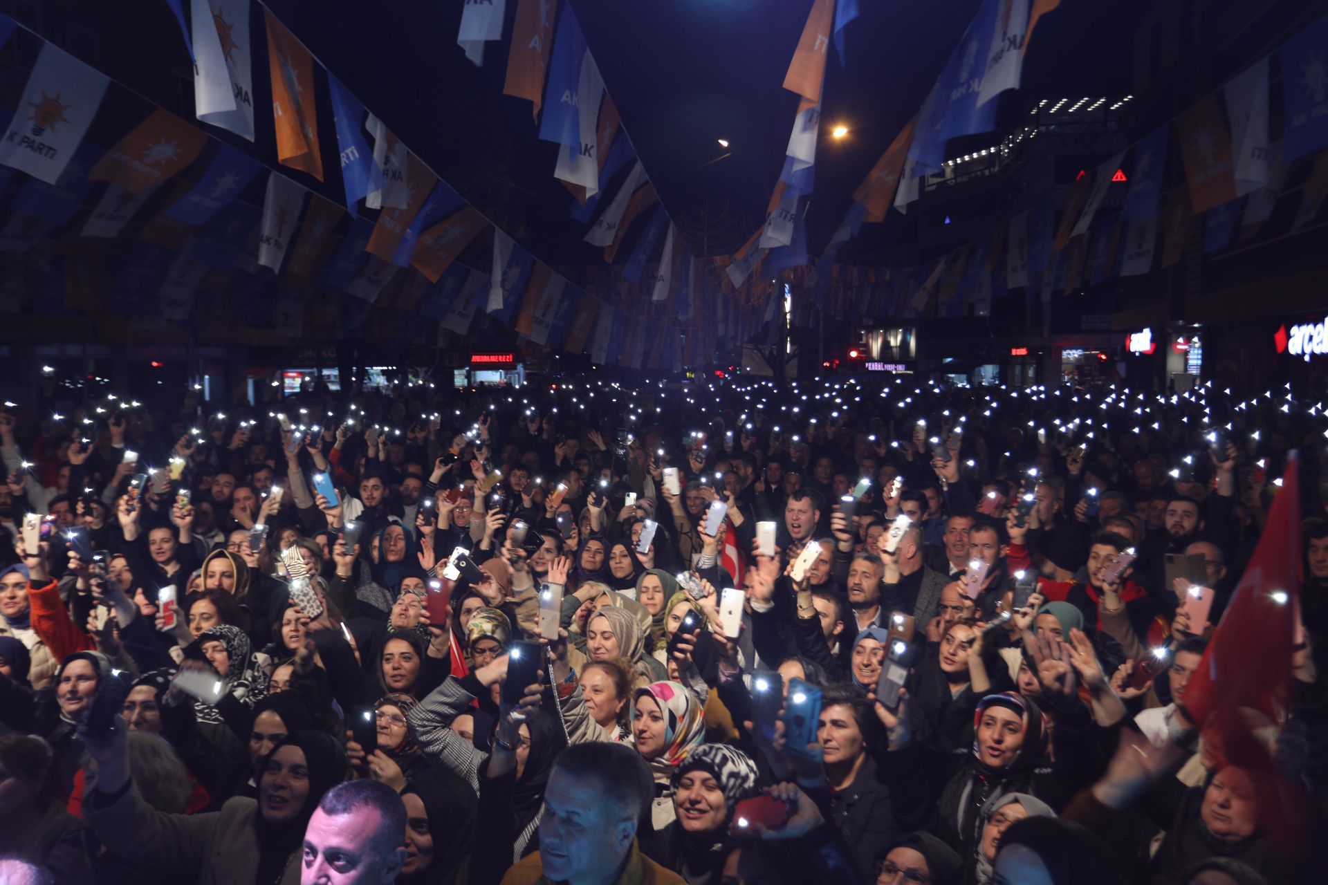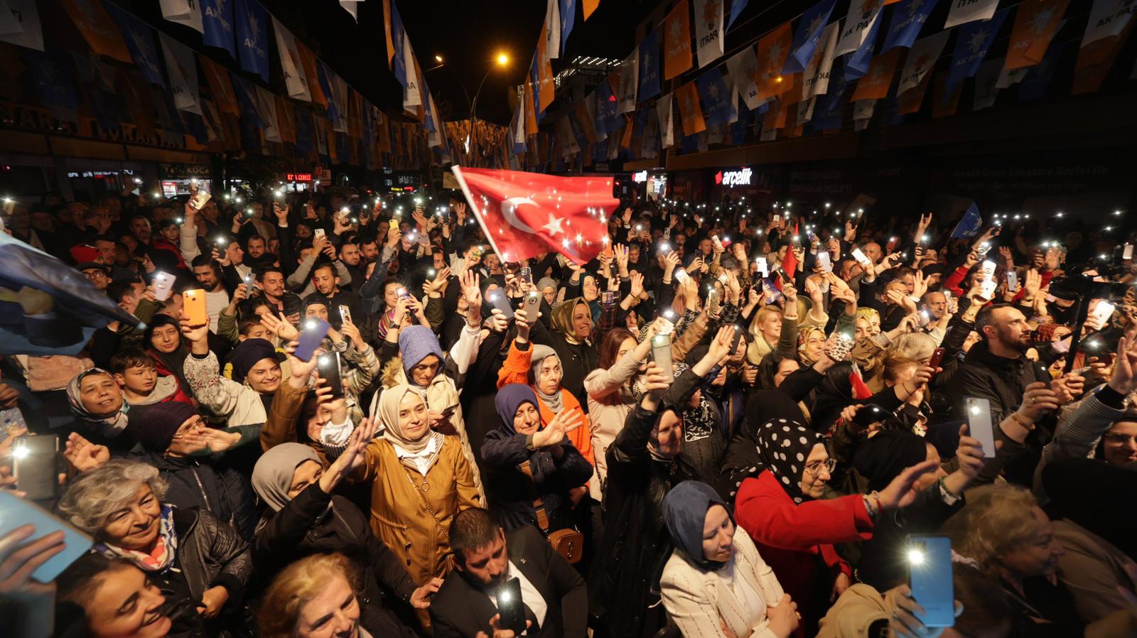 AK Parti İzmit İlçe Başkanlığı’nın mahalle buluşmaları Bekirpaşa’da devam etti. Alanı dolduran kalabalık cep telefonlarıyla geceyi ışıl ışıl aydınlatırken, AK Parti Kocaeli İl Başkanı Dr.Şahin Talus, muhalefetin neden ara sokakları bile dolduramadığını açıkladı.