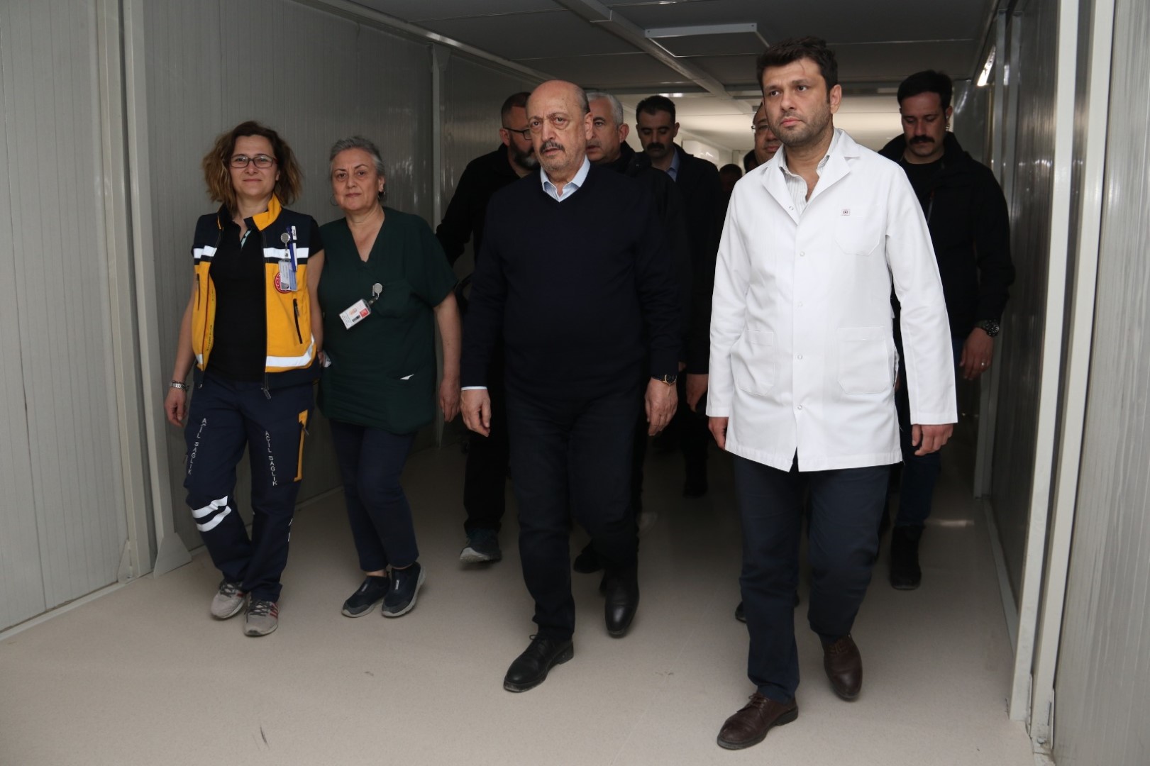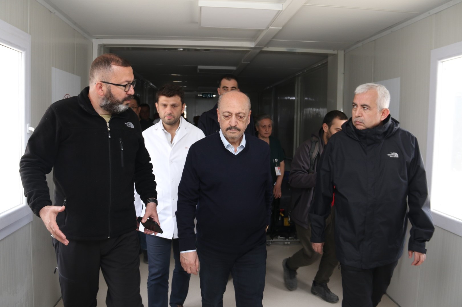 Çalışma ve Sosyal Güvenlik Bakanı Vedat Bilgin ile Türk-İş Başkanı Ergün Atalay, Kocaeli Büyükşehir Belediyesi’nin Hatay’ın Defne ilçesinde inşa ettiği hastaneyi ziyaret etti. Genel Sekreter Balamir Gündoğdu’dan hastanenin alt yapısı, konteyner kurulumu, elektrik ve tesisat işleri gibi çalışmaların 20 gün içinde tamamlandığı bilgisini alan ve hastane personeliyle tanışan Bakan Bilgin, Kocaeli Büyükşehir Defne Hastanesine tam not verdi.