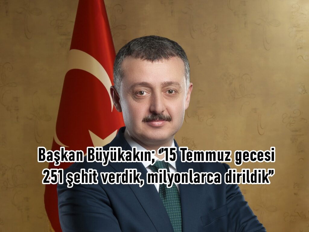‘’Türk milleti, yenilmez ve esir alınamaz bir millet olduğunu 15 Temmuz 2016 gecesi dünyaya bir kez daha ispat etmiştir’’ diyen Başkan Büyükakın, sözlerine şöyle devam etti; ‘’Hain darbecilere karşı şanlı bir direniş verilen o gecede, kahraman gençlerimiz, kadınlarımız ve erkeklerimizden 251 şehit verdik, ama milyonlarca dirildik. 15 Temmuz’un üzerinden 4 yıl geçti. Zaman çabuk geçiyor. Ancak hafızamız diri. 15 Temmuz hain darbe girişiminde güçlü Türkiye’nin bekasına kast eden hainlere karşı bir zafer elde ettik. Bu zaferin gelecek nesillere aktarılması için üzerimize düşen görevleri yerine getireceğiz.