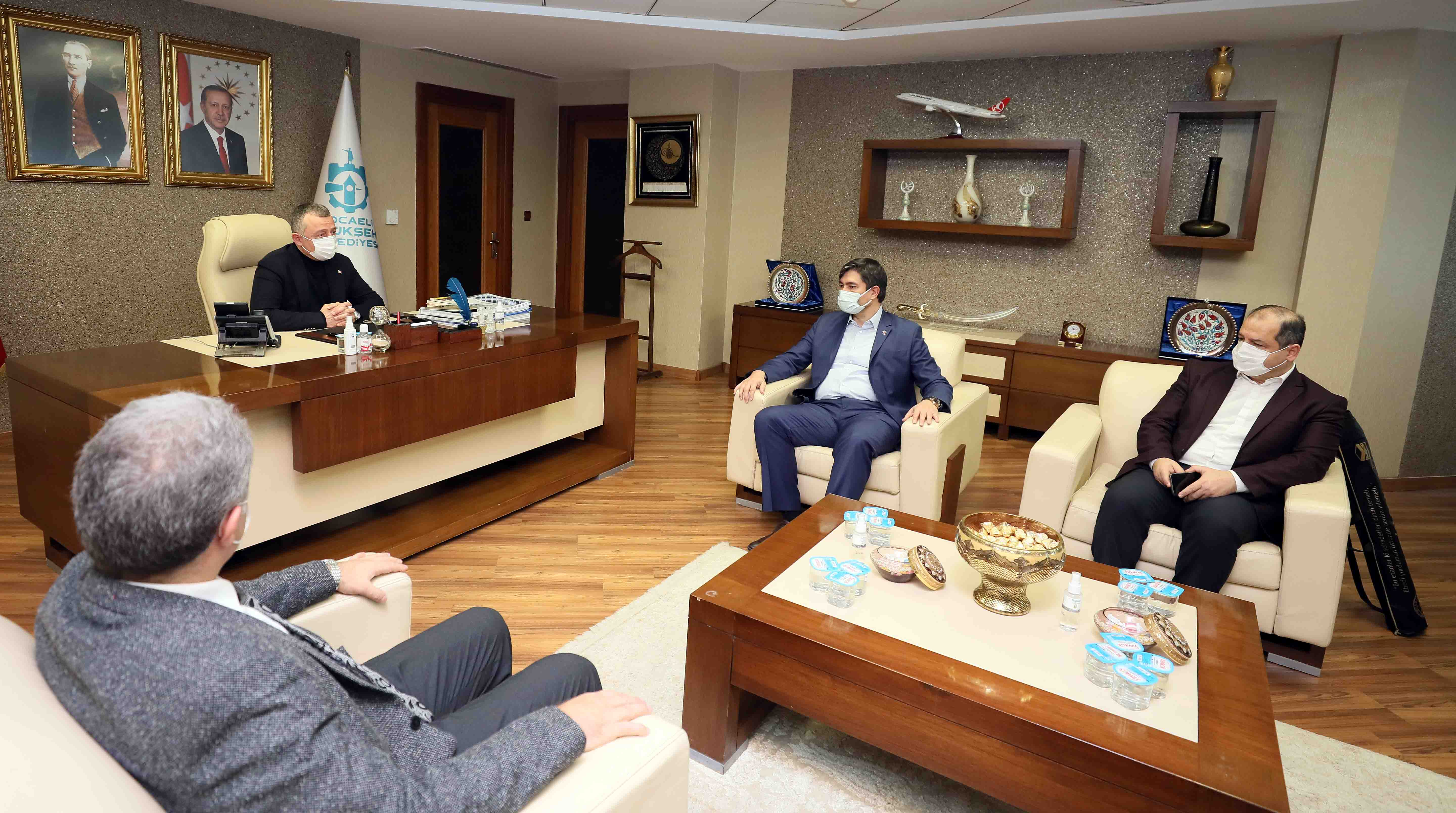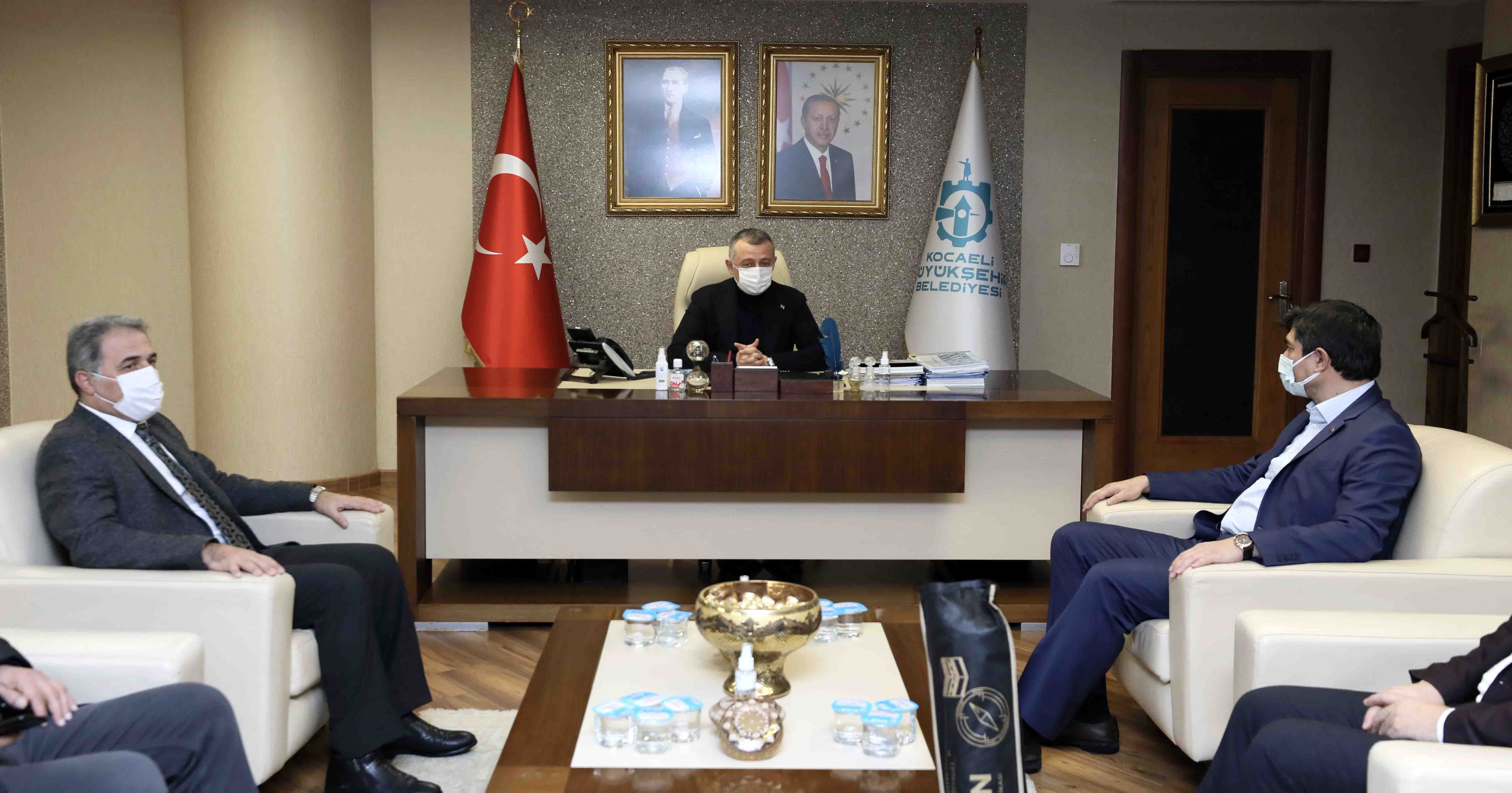 Marmara Belediyeler Birliği ve Kocaeli Büyükşehir Belediye Başkanı Doç. Dr. Tahir Büyükakın, Belediye ve Özel İdare Çalışanları Birliği Sendikası (BEM-BİR-SEN) Genel Başkanı Levent Uslu ile beraberindeki heyeti makamında konuk etti. Kendilerini samimi bir şekilde ağırlayan ve konuk eden Başkan Büyükakın’a teşekkür eden BEM-BİR-SEN Genel Başkanı Uslu, “Bugüne kadar Kocaeli adına yaptığınız çalışmalar için size teşekkür ediyorum” diyerek, “Sizin başkanlığınızda Kocaeli’ne daha iyi hizmet etmek için yoğun bir şekilde çalışıyoruz. Sizlere de bu yoğun gündeminizdeki çalışmalarınızda başarılar diliyorum. Arkadaşlarımızın Kocaeli’ne kazandırdığınız ve kazandıracağınız tüm hizmetler için sizden övgüyle bahsediyorlar. Bir çalışanın başkanını bu denli sevmesi çalışma verimini arttıracağı hep görülmüştür” dedi.