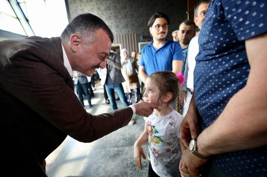 “Sizlerle bayram için burada buluşmak ve bir arada olmak bizim için çok keyif verici” diyerek sözlerine başlayan Başkan Büyükakın, “Yüzünüzdeki, gözünüzdeki mutluluğu görmek bizim için ayrı bir mutluluk. Peygamber efendimize ‘Hangi dualar kabul olur?’ diye sormuşlar. Peygamber efendimiz de ‘Günahsız ağızlarınızla birbirinize ettiğiniz dualar kabul olur’ demiş. Bana da sizler dua ederseniz çok mutlu olurum” diye konuştu.