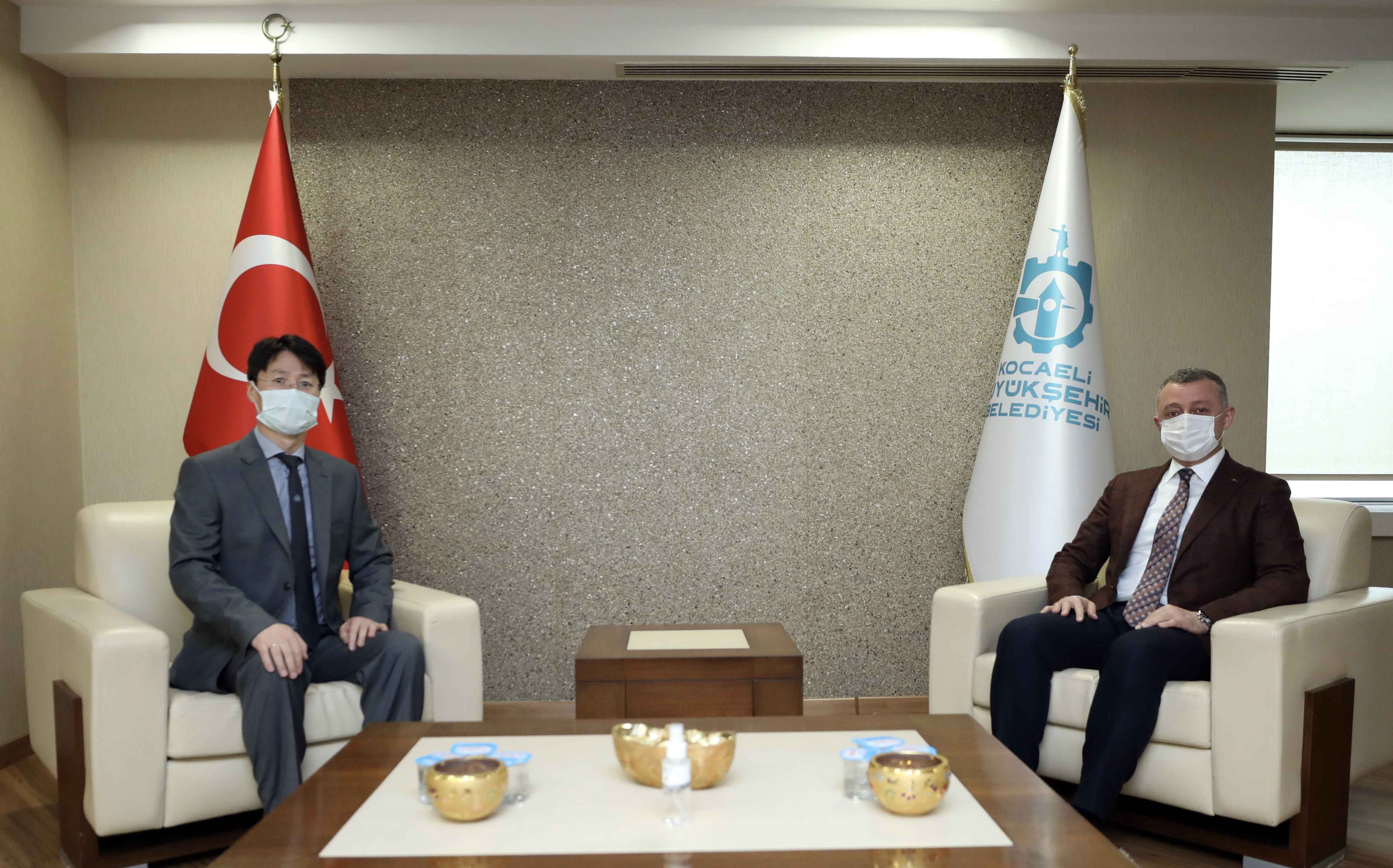 Marmara Belediyeler Birliği ve Kocaeli Büyükşehir Belediye Başkanı Tahir Büyükakın, Moğalistan Başkonsolosu Khishigsuren Sharav’ı makamında konuk etti. İki ülke arasındaki ilişkilerden kentlerin ticari birlikteliklerine kadar birçok konunun ele alındığı görüşmede, sanayi ve ticaret odalarıyla kurulacak ilişkilerin önemine vurgu yapıldı. Pandemi nedeniyle dünyada yaşanan sağlık hizmetlerindeki sorunlara rağmen Türkiye’nin çok iyi organize olduğunu dile getiren Başkan Büyükakın, “Ülkemizin sahip olduğu sağlık altyapısının önemi bu son bir yılda daha iyi görüldü. Bu dönemde sağlık ve sosyal altyapımız çok iyi işler başardı. Büyükşehir Belediyesi olarak bizlerde bu dönemde çok önemli sağlık ve sosyal hizmetlere imza attık” dedi.