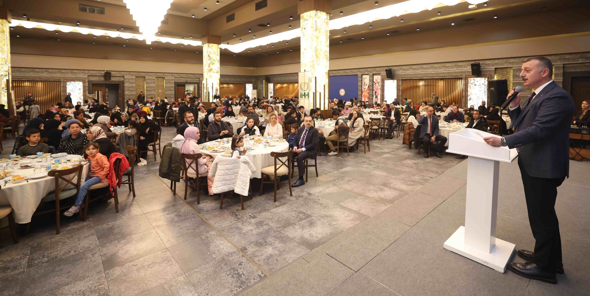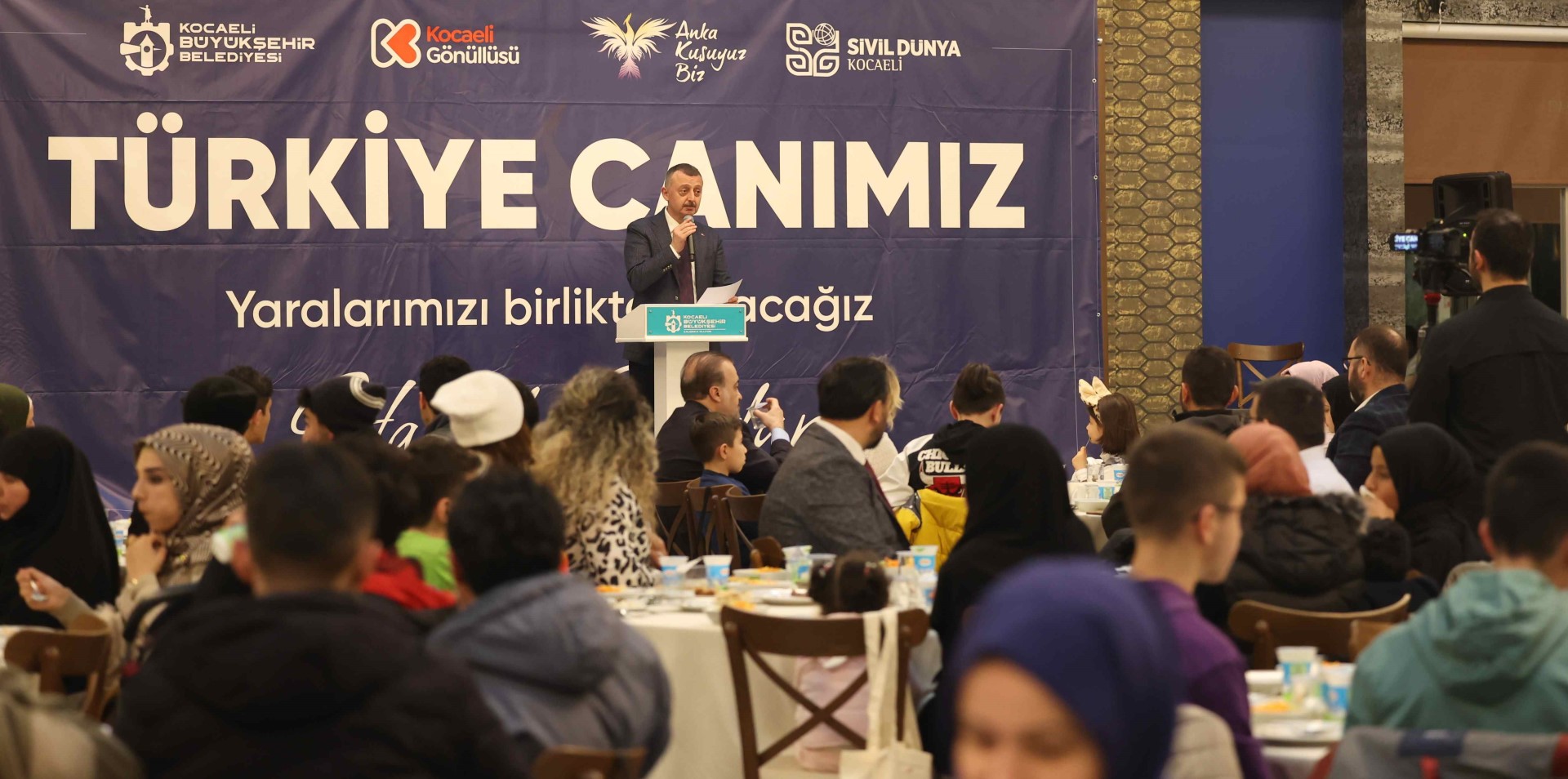 Marmara Belediyeler Birliği ve Kocaeli Büyükşehir Belediye Başkanı Tahir Büyükakın, İHH İnsani Yardım Vakfı’nın organize ettiği iftar programında yetimler buluştu. AK Parti Kocaeli İl Başkanı Şahin Talus, İHH Kocaeli İl Temsilcisi İsmail Yeşildal, Büyükşehir Belediyesi Genel Sekreter Yardımcısı Dr. Hasan Aydınlık ve çok sayıda gönüllünün yer aldığı iftar programında çocuklarla yakından ilgilenen Başkan Büyükakın, “Allah çocuklarımızın yüzünü her daim güldürsün” diyerek şunları söyledi: “Sözüm çocuklara değil büyüklere. Dünyayı çocukların gözünden gördüğünüzde bambaşka bir yer oluyor. Bütün mevzularınız, hırslarınız ve kavgalarınız çocukların gözünden dünyaya baktığınızda önemsizleşiyor. Bakınız, şu anda dünyadaki her beş çocuktan bir tanesi çatışma bölgelerinden dolayı mağdur olmuş durumda. Yeryüzündeki çeşitli kavgalardan veya çatışmalardan dolayı 40 milyon çocuk evlerinin dışında sokakta veya kampta yaşamak zorunda kalıyor. Her yıl ortalama iki buçuk milyon çocuk kaçırılıyor veya kayboluyor. Dünya da her gün 385 milyon çocuk aç uyuyor.”