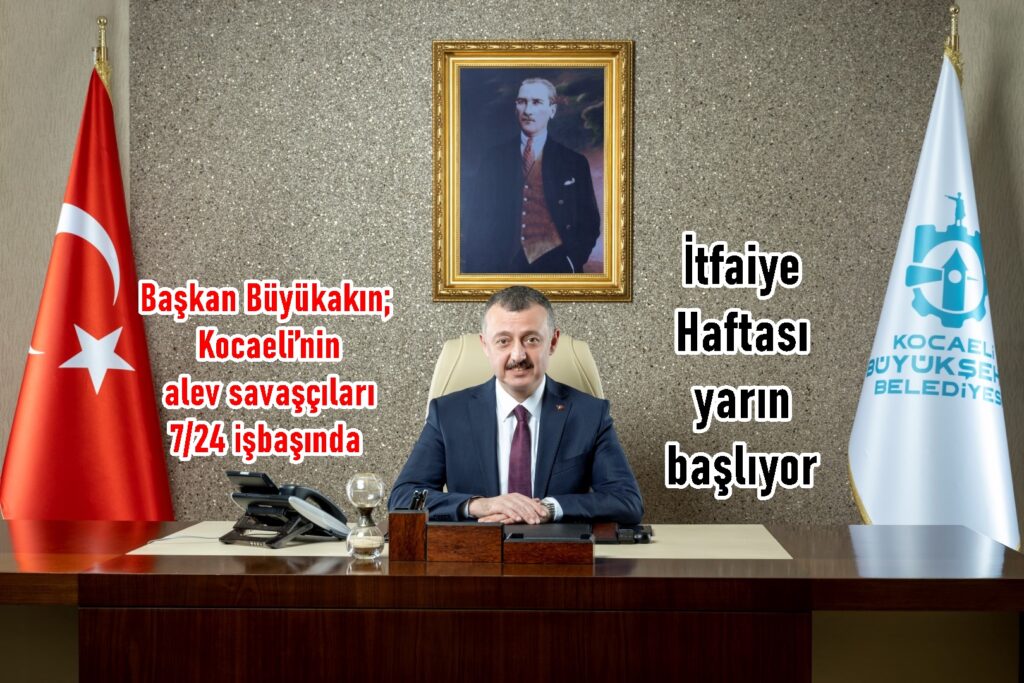 Kocaeli Büyükşehir Belediye Başkanı Doç. Dr. Tahir Büyükakın, 25 Eylül-1 Ekim İtfaiyecilik Haftası nedeniyle bir kutlama mesajı yayınladı. Kocaeli Büyükşehir Belediyesi İtfaiye Daire Başkanlığı’nda görev yapan tüm personeli kutlayan Başkan Büyükakın, ‘’Kocaeli halkımız müsterih olsunlar, Kocaeli Büyükşehir Belediyesi İtfaiye Teşkilatı, halkımızın güveni, refahı, huzuru ve mutluluğu için 7 gün 24 saat iş başında. İtfaiye Teşkilatımızın kahraman alev savaşçılarının İtfaiyecilik Haftasını kutluyorum, çalışmalarında başarılar diliyorum’’ dedi…