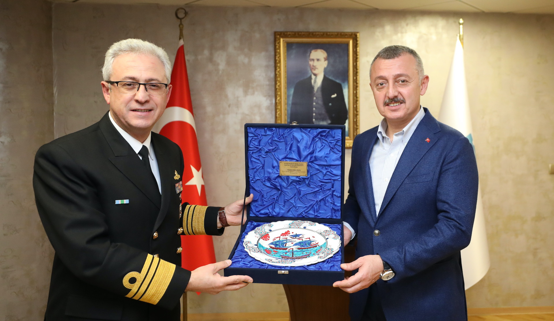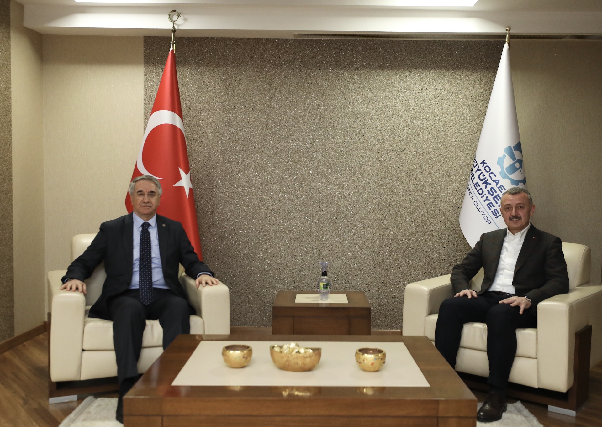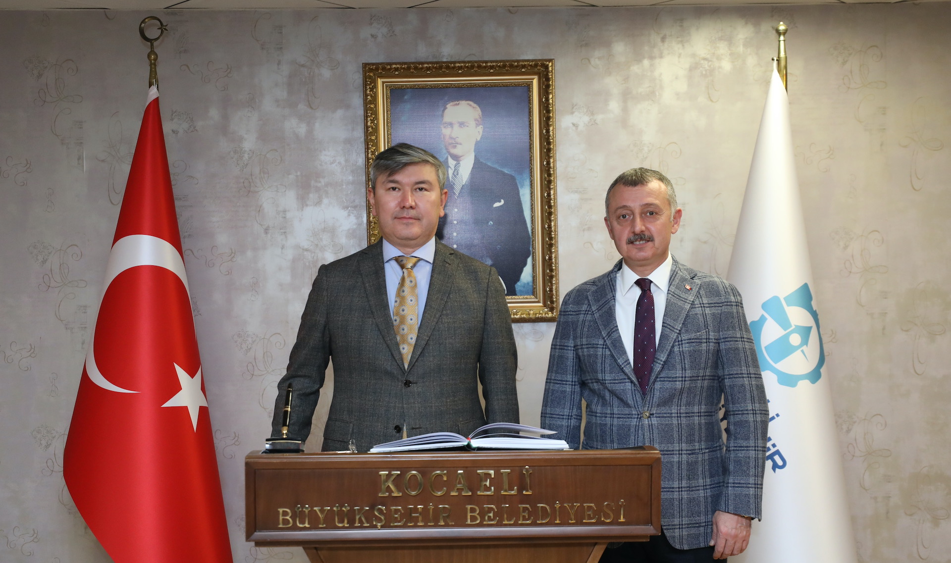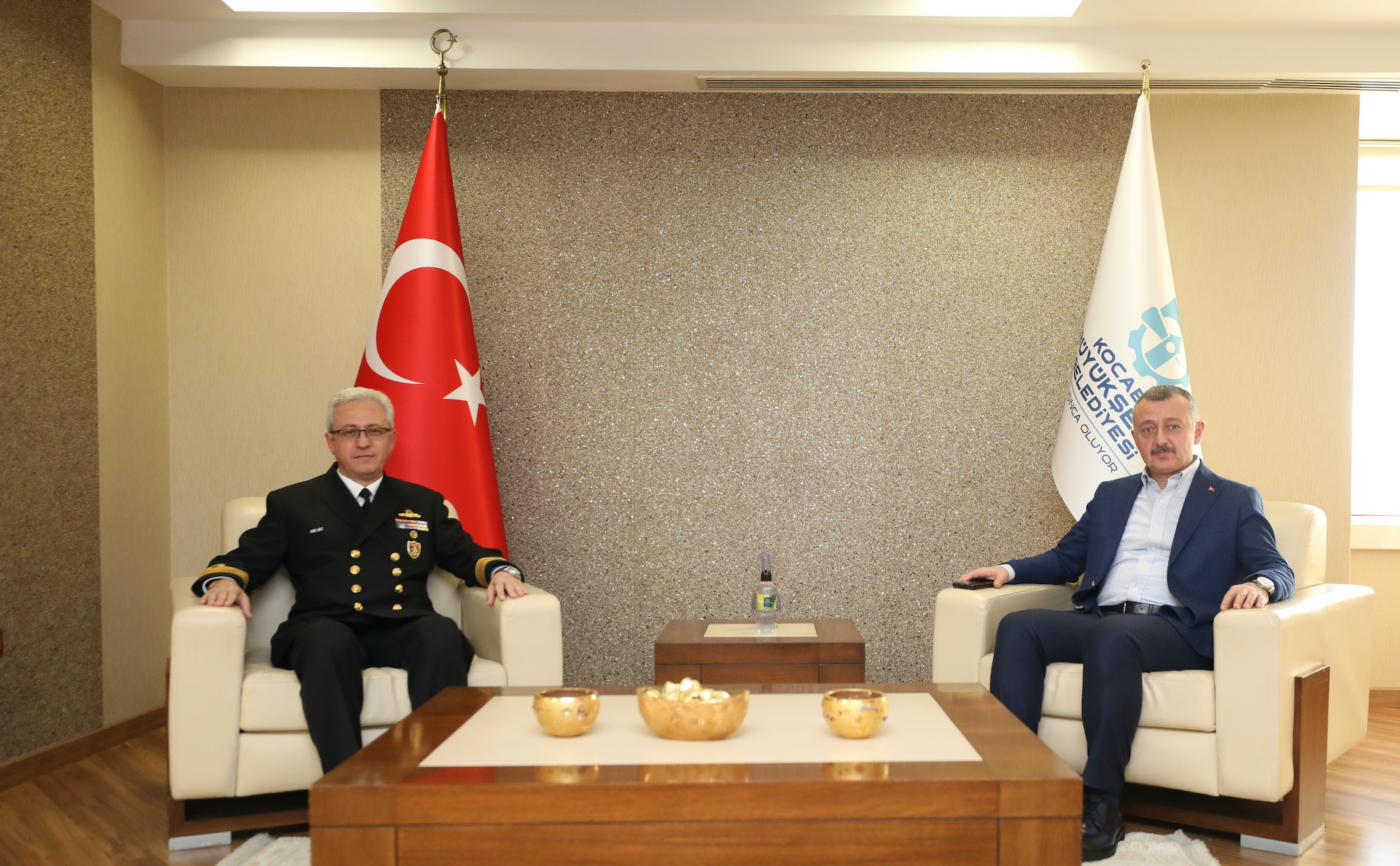 Marmara Belediyeler Birliği ve Kocaeli Büyükşehir Belediye Başkanı Doç. Dr. Tahir Büyükakın, Deniz Eğitim Öğretim ve Garnizon Komutanlığı görevini sürdüren Tümamiral Ayhan Gedik, Kazakistan Ankara Büyükelçisi Abzal Saparbekuly ile AK Parti MKYK Üyesi ve Yerel Yönetimler Başkan Yardımcısı Mücahit Yanılmaz’ı makamında konuk etti. Tümamiral Ayhan Gedik’e görevinde bir kez daha başarılar dileyen Başkan Büyükakın, Kazakistan Büyükelçisi Abzal Saparbekuly ile de uluslararası konularda görüş alışverişi yaptı. AK Parti Yerel Yönetimler Başkan Yardımcısı Mücahit Yanılmaz’a da Kocaeli genelinde yapılan altyapıdan üst yapıya, ulaşımdan sosyal hizmetlere kadar hayata geçirilen projeler hakkında bilgi verdi. Birliktelikler yapılan görüş alışverişinin ardından sona erdi.