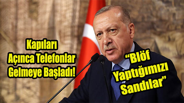 Cumhurbaşkanı Erdoğan, göçmenlere kapıların açılmasıyla ilgili “Blöf yaptığımız sanıldı, kapılar açılınca telefonlar gelmeye başladı” dedi.