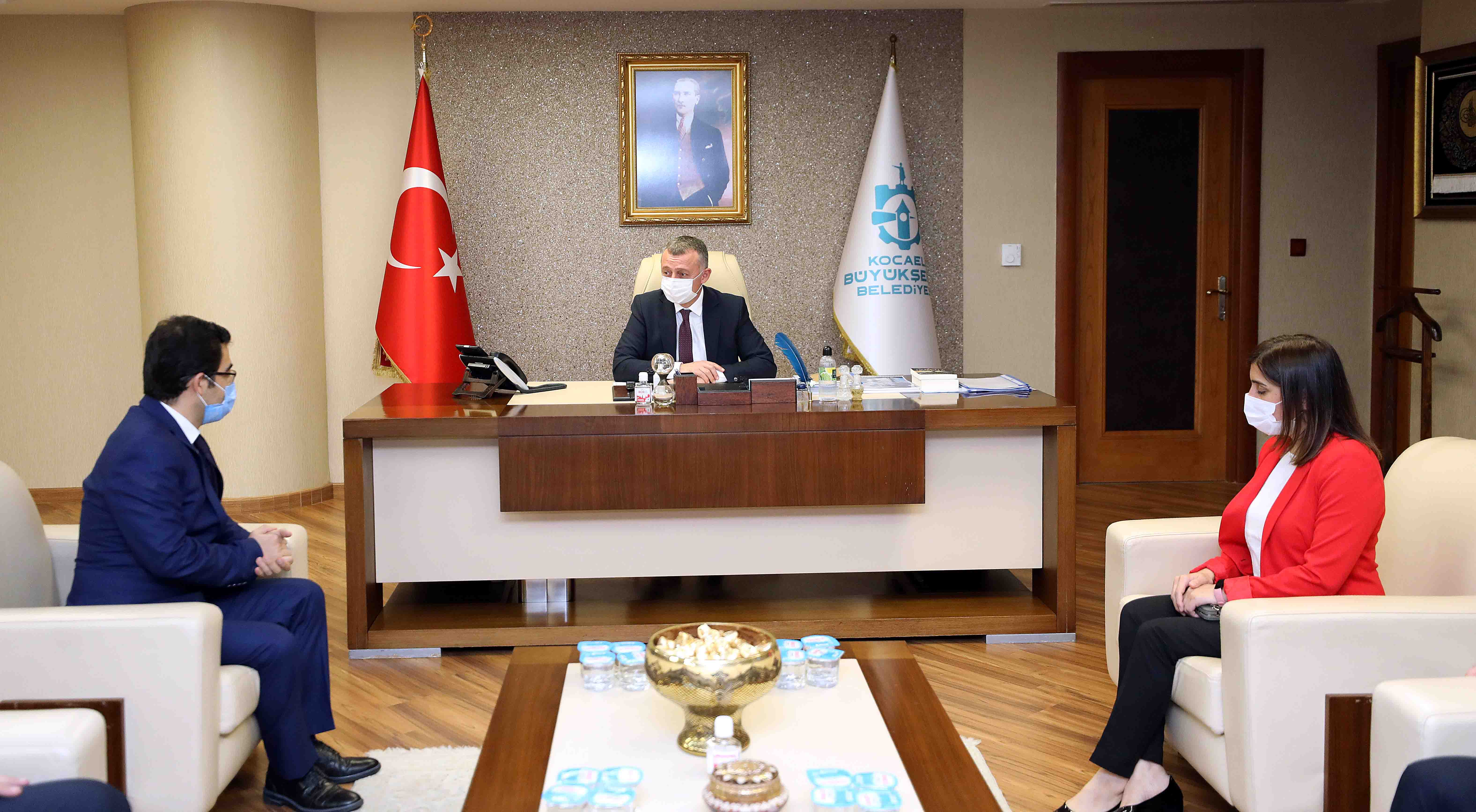Kocaeli Veteriner Hekimler Odası Başkanı Mehmet Bostancı ve yönetiminin nazik ziyaretinden dolayı konuklarına teşekkür eden Başkan Büyükakın, misafirleriyle görüş alışverişi de yaptı. Oda Başkanı Bostancı, hayata geçirecekleri projeler ve hizmetler hakkında Başkan Büyükakın’a bilgi verdi.