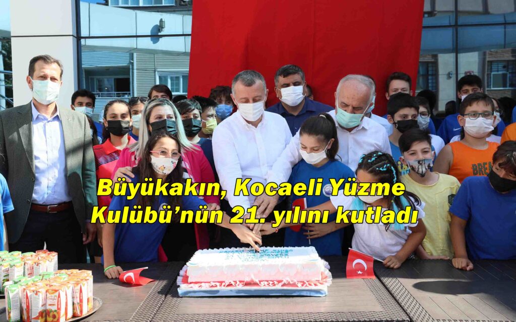 Kocaeli Yüzme Kulübü’nün 21. yılını kutlayıp, pasta kesen Başkan Büyükakın, sporcu çocuklara ve gençlere yoğun ilgi gösterdi.