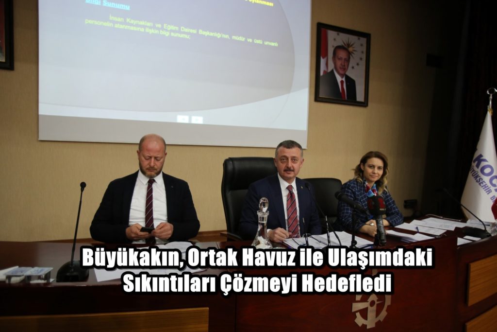 Kocaeli Büyükşehir Belediyesi Ocak Ayı Meclis Toplantısı, Leyla Atakan Kültür Merkezi’nde yapıldı. Büyükşehir Belediye Başkanı Doç. Dr. Tahir Büyükakın’ın başkanlığında gerçekleştirilen toplantıda 93 gündem maddesi üzerinden görüşme gerçekleştirildi. Toplu taşımayı tek çatı altında toplamak amacı ile başlatılan ortak havuz sistemi ile ilgili protokol yapılması için mecliste Başkan Tahir Büyükakın’a yetki verildi. Büyükakın, ortak havuz ile toplu taşımadaki sıkıntıları çözmeyi hedeflediklerini söyledi