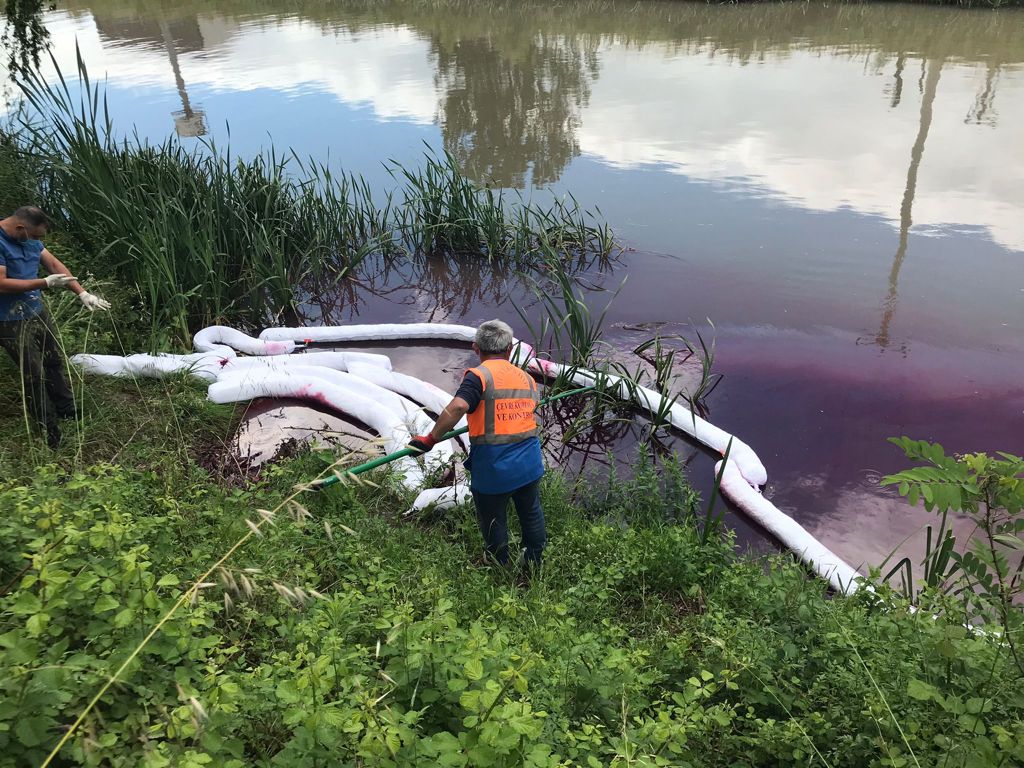 Kocaeli Büyükşehir Belediyesi, Kilez Deresi’ne yağmur suyu hattından kırmızı renkli atık su madde deşarj yapan firmaya müdahale etti.