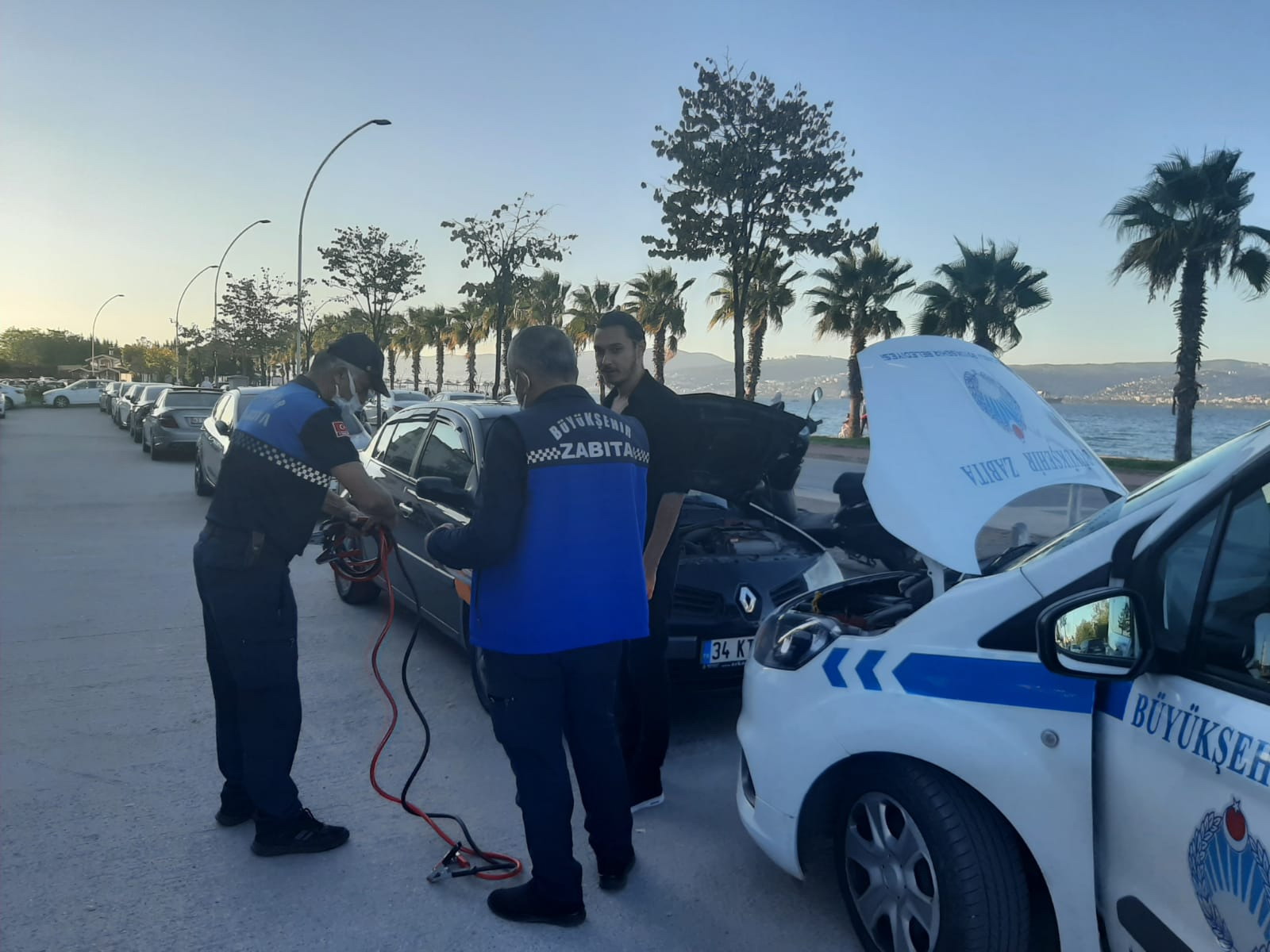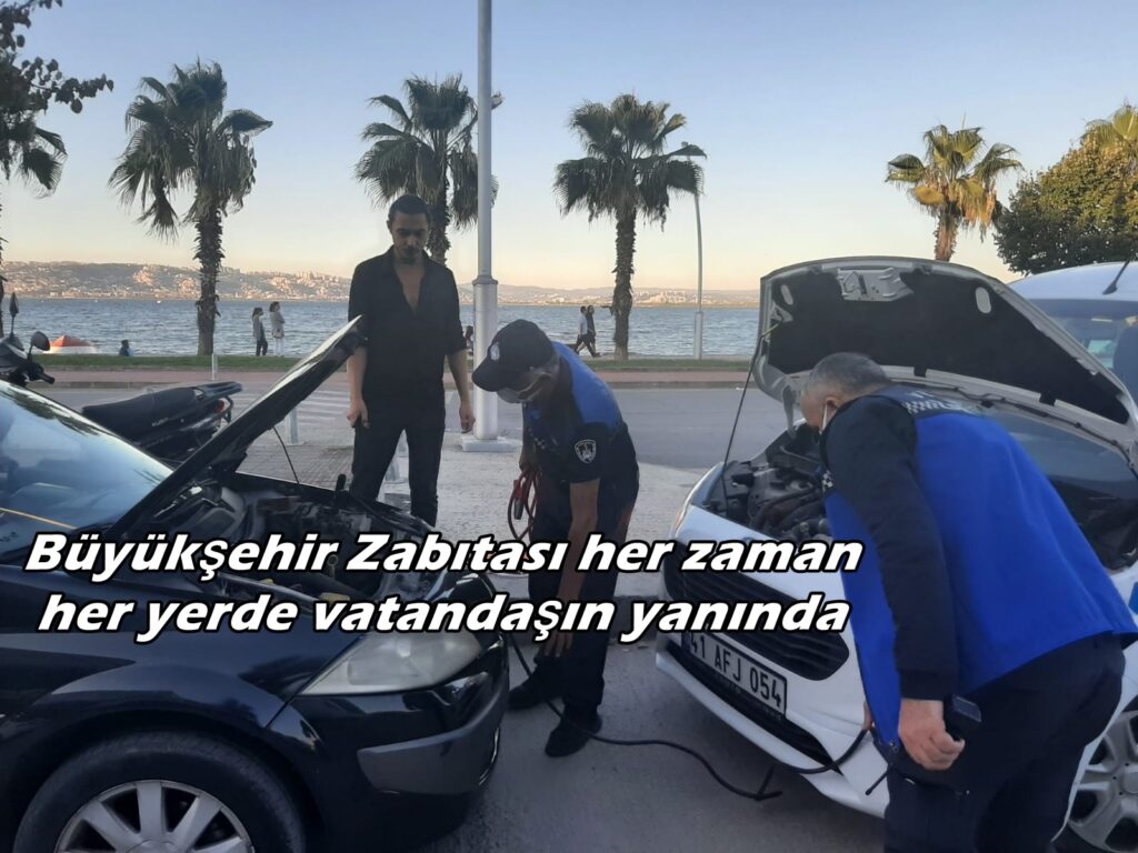 Büyükşehir Zabıta Dairesi Başkanlığı ekipleri geçtiğimiz günlerde devriye görevi sırasında Başiskele sahilinde bir vatandaşın aracını çalıştıramadığını tespit etti. Aracını çalıştırmakta sorun yaşayan vatandaşa yardımcı olmak isteyen ekip, hemen arıza tespiti yaptı. Vatandaşın aracın aküsünde problem olduğunu söylemesi üzerine ekip, kendi araçlarında bulunan akü takviye şarj kablosuyla vatandaşın aracını çalıştırmasına yardımcı oldu. Aracı çalışan vatandaş güvenle olay yerinden ayrılırken, Büyükşehir Zabıta ekibine teşekkür etti.