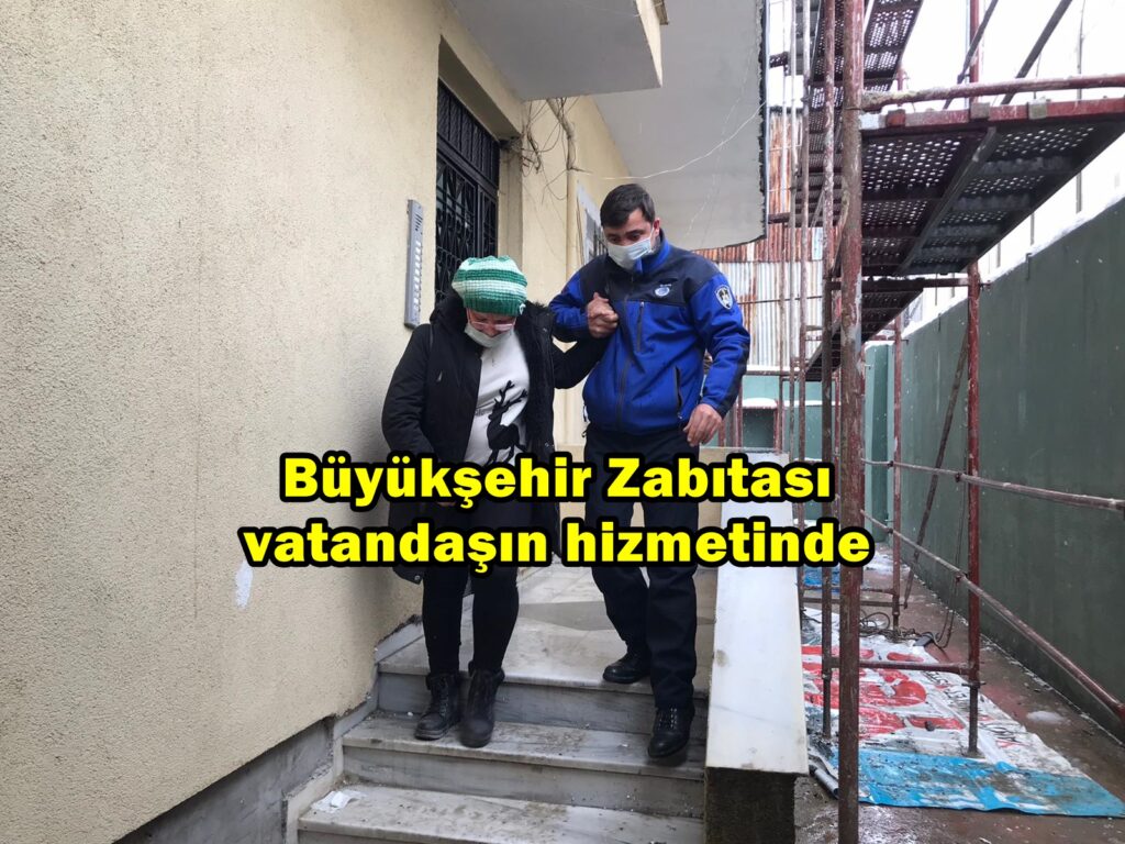 Büyükşehir Zabıta ekipler yoğun kar yağışlarının olduğu bugünlerde, dışarıda yürümekte güçlük çeken vatandaşları gitmek istedikleri yere ulaştırıyor