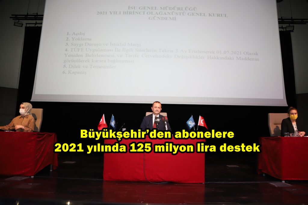 Genel Kurul üyelerine bilgi veren İSU Genel Müdürü Ali Sağlık, “Büyükşehir Belediye Başkanımızın talimatları üzerine, vatandaşlarımıza katkı sağlamak için çalışma yürüttük. Geçen yıl Haziran ayında Genel Kurulda aldığımız karar doğrultusunda 2021 yılı Ocak ayından itibaren Aylık TÜFE uygulamasına ve ayrıca yıllık TÜFE uygulamasına geçilecekti. Ancak, Aralık ayında yaptığımız 3. Olağanüstü Genel Kurulda Ocak, Şubat ve Mart 2021 ayları için tüm abonelerimizi TÜFE uygulamamızı erteledik ve yaklaşık 54 milyon lira katkı sağladık.