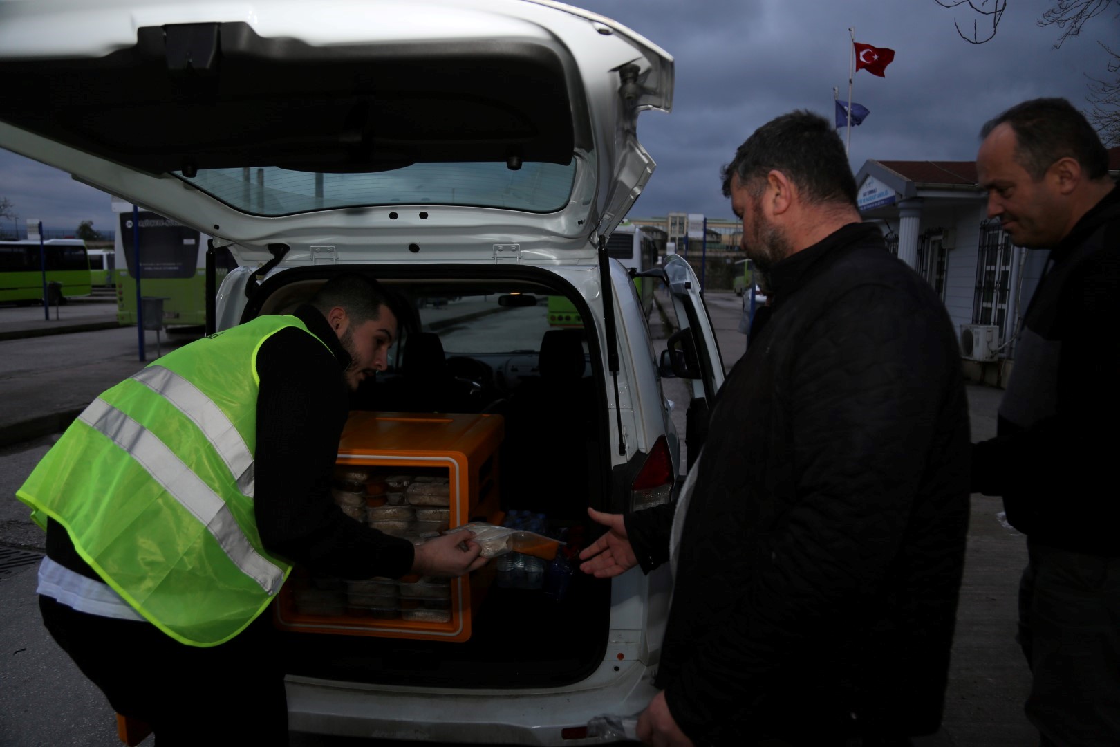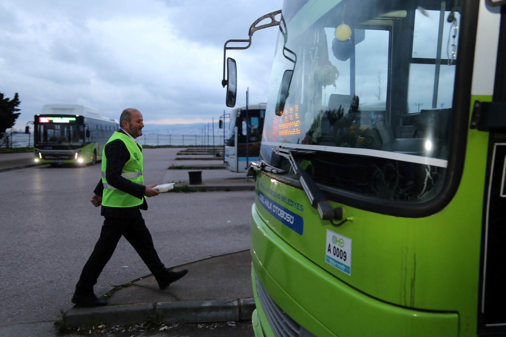 Kocaeli Büyükşehir Belediyesi, Ramazan ayında iftar saatinde çalışmak zorunda kalan esnafa yönelik iftarlık dağıtımlarına devam ediyor. Bu kapsamda İzmit’te görevli minibüs sürücülerine iftarlık dağıtıldı. Kocaeli Büyükşehir Belediyesi Dış İlişkiler Dairesi Başkanlığı Esnaf ve Sanatkar İşleri Şube Müdürlüğü, Ramazan ayında çalışan esnaflara yemek desteği veriyor. Bu kapsamda iftar saatinde çalışmak zorunda kalan minibüs sürücüleri için sıcak yemek hazırlandı. Büyükşehir ekipleri iftar saatine yakın İzmit Batı Terminali, Güney Terminali ve Kırsal Terminali gezdi. Terminalde bulunan minibüs sürücülerine ve terminalde görevli personele iftarlık sıcak yemek dağıtıldı. Sıcak yemek dağıtımdan memnun kalan minibüsçüler, Kocaeli Büyükşehir Belediye Başkanı Tahir Büyükakın’a teşekkür etti.