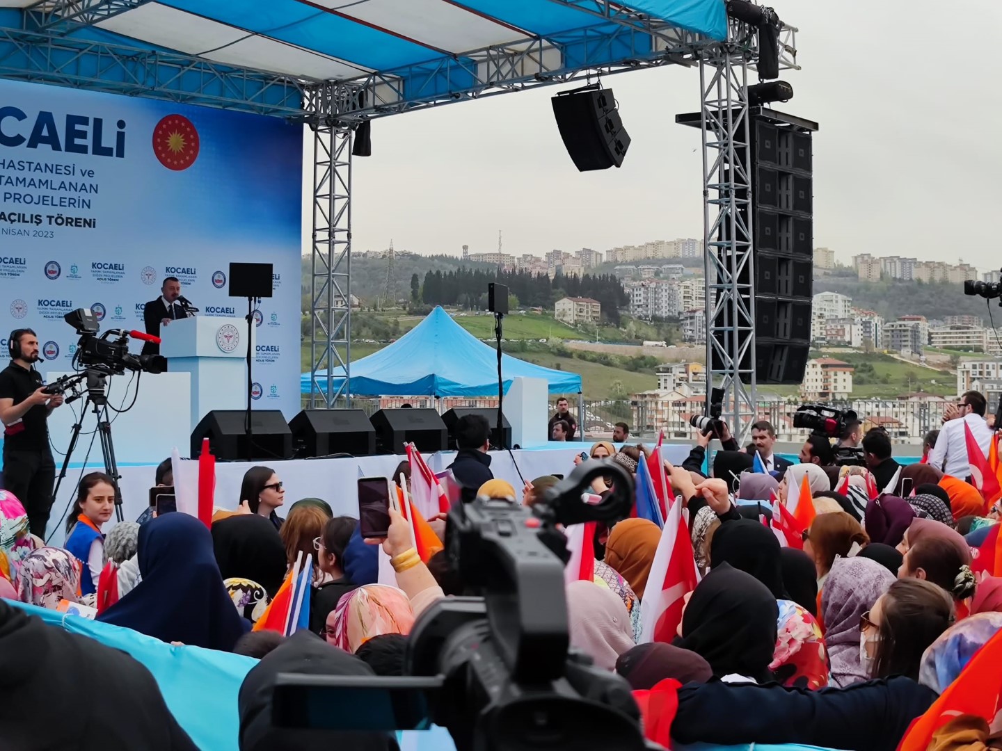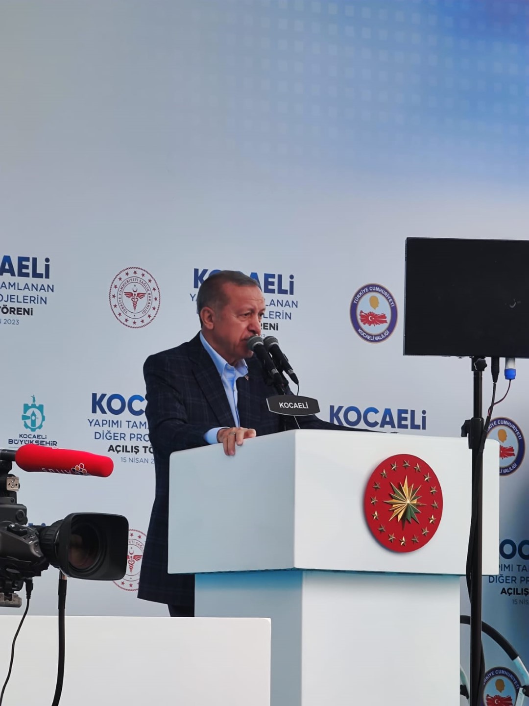 Yoğun bir katılım ve coşkulu bir tezahürat eşliğinde sözlerine başlayan Cumhurbaşkanı Erdoğan, ‘’Kocaelinin güzel insanları, başımızın tacı kıymetli hanımlar, geleceğimizin teminatı sevgili gençler, sizi hürmetle selamlıyorum. Şu muhteşem katılıma bak. Bugün yine adı Koca, gönlü yüce, tabiatın ve tarihin şehri Kocaeli’nin tüm güzel insanlarına selamlarımı gönderiyorum. Kocaeli Şehir Hastanesiyle diğer yatırımlarımızın hayırlı olmasını diliyorum. Bir zamanlar neydi hastanelerimizin hali, hastalarımız rehin alınır veya rehine alınırdı. Hatırlıyosunuz o günleri di mi, kimdi o zaman SSK’nın başında?’’ ifadesini kullandı.