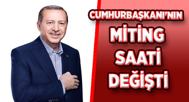Cumhurbaşkanı Recep Tayyip Erdoğan’ın 10 Haziran Pazar günü saat 16.00’da ilimizde düzenleyeceği mitingin saati değişti. Miting saati 17.30’a alındı.