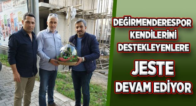 Kara, Cam fanus içinde mini bir stadın oluşturulduğu, Değirmenderespor ile firmaların logolarının da bulunduğu bir teraryum hediye etti. Ateş, Şekerli ve Evren hediyeden ve gösterilen ilgiden oldukça memnun olurken, Değirmenderespor’a olan desteğe devam edeceğini söyledi. Kulüp Sözcüsü Hasan Zeki Sarı ise yaptığı açıklamada, “Bizim her zaman yanımızda olan Ateş, Şekerli ve Evren’e çok teşekkür ediyorum. Değirmenderespor’u el birliği ile daha güzel günlere taşıyacağız” dedi. Haber: Serkan SIDAL