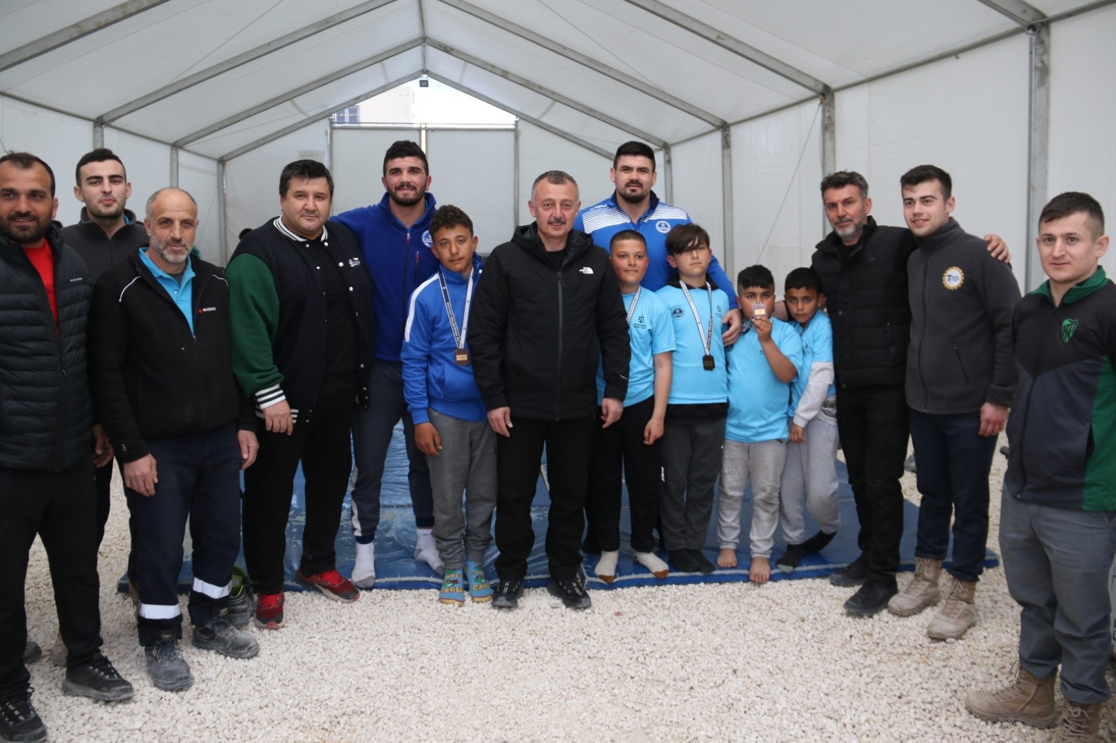 Başkan Büyükakın, “Bir yandan sıkıntılar yaşıyoruz bir yandan sabırla birlikte güzellikler ortaya çıkıyor. Şehirler yıkılsa da insanların gönüllerini birbirine bağlayan köprüler dimdik ayakta duruyor. Bu memleketin geleceğinden umutvar olmak lazım. Umudu kaybetmemek lazım. İnşallah bu çocuklardan biri de ileride başpehlivan olacak. Hepsinin hayatı normale dönecek. Milletimizin, devletimizin gücü buna yeter. Yavrularımızın yüzü yine gülecek. İlk günlerdeki karamsar tablo ortadan kalktı. Kalıcı alanlar yapılınca şehirdeki hayat hızla normale dönecek” dedi.