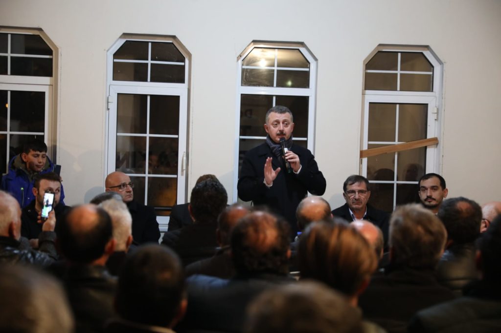 Büyükşehir Belediye Başkan Adayı Doç. Dr. Tahir Büyükakın, “Biz adaylık sürecimizin açıklanması tamamlanmadan önce buradaki kentsel dönüşümle ilgili çalışma başlamıştı. Benim adaylığım açıklandıktan sonra riskli alan ilan edilmesiyle ilgili bir karar çıktı. Bakın Cumhurbaşkanı kararnamesiyle ilgili düzenleme, yine bir başka kararname ile değiştirilebilir. Size buraya gelip ben bunu değiştireceğim diyen birine inanmayın. Biz Sibel Hanım’la birlikte Sayın Cumhurbaşkanımızla görüştük, konuyu kendilerine arz ettik, bu bölgede bazılarının dönüşüm istediğini, bazılarının istemediğini söyledik. Kendileri ‘Çevre Bakanı ile görüşün bize bilgi versin’ dedi. Ben Çevre Bakanı ile görüştüm, çalışmaya başladık, burada iki anket yaptık. Ardından Çevre Bakanı ile konuyu tekrar konuştuk ve burada bu bölgeden muhtarımızın da olduğu kanaat önderleriyle birlikte toplantı yaptık. Bakanımız, burada insanların ‘İstemediğiniz bir şeyi yapmayız’ dedi. Buna rağmen buraya gelip spekülasyon yapan firmanın sahibi olan şahıs, bir sosyal medya paylaşımı yaptı. O paylaşım İzmit’teki bir aday tarafından hepinizin cep telefonlarına gönderildi, bize de geldi. Bakın, Sayın Bakanımız mesajı çok net, ‘Ben firma tanımam kardeşim’ dedi. Eğer firma istemiyorsanız firma yok. İstiyorsanız belediye ile istiyorsanız bakanlıkla dönüşüm yapabiliriz. ‘Hiçbir şey istemiyoruz, biz halimizden memnunuz’ diyorsanız, burası aynen böyle kalacak. Sizin istemediğiniz hiçbir şey yapılmayacak” diye konuştu.