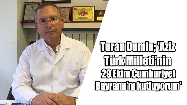Turan Dumlu; ‘İstiklâl mücadelemizin önderi, Cumhuriyetimizin kurucusu Gazi Mustafa Kemal Atatürk ile silah arkadaşları başta olmak üzere bütün şehit ve gazilerimizi şükran, saygı ve rahmetle anıyor. Cumhuriyet’e sahip çıkmanın onurunu yaşıyor, aziz Türk Milleti’nin 29 Ekim Cumhuriyet Bayramı’nı kutluyorum.’