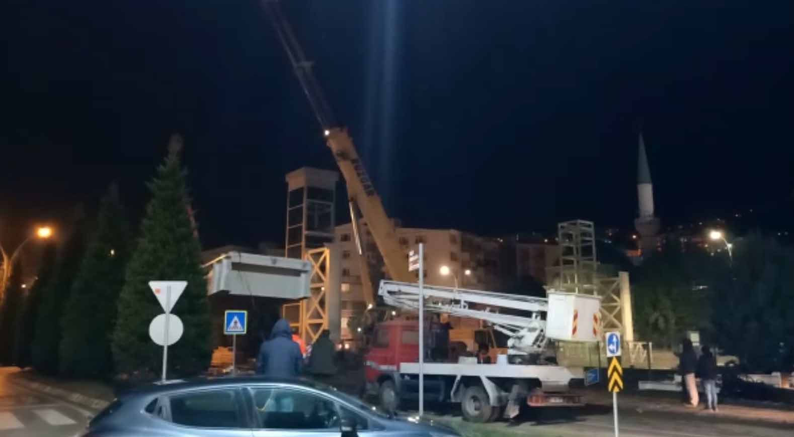 Sekapark 2. Etap ile Eğitim Kampüsü tramvay durağı arasına yapılan yaya üst geçidinin üst kirişi yerleştirildi.