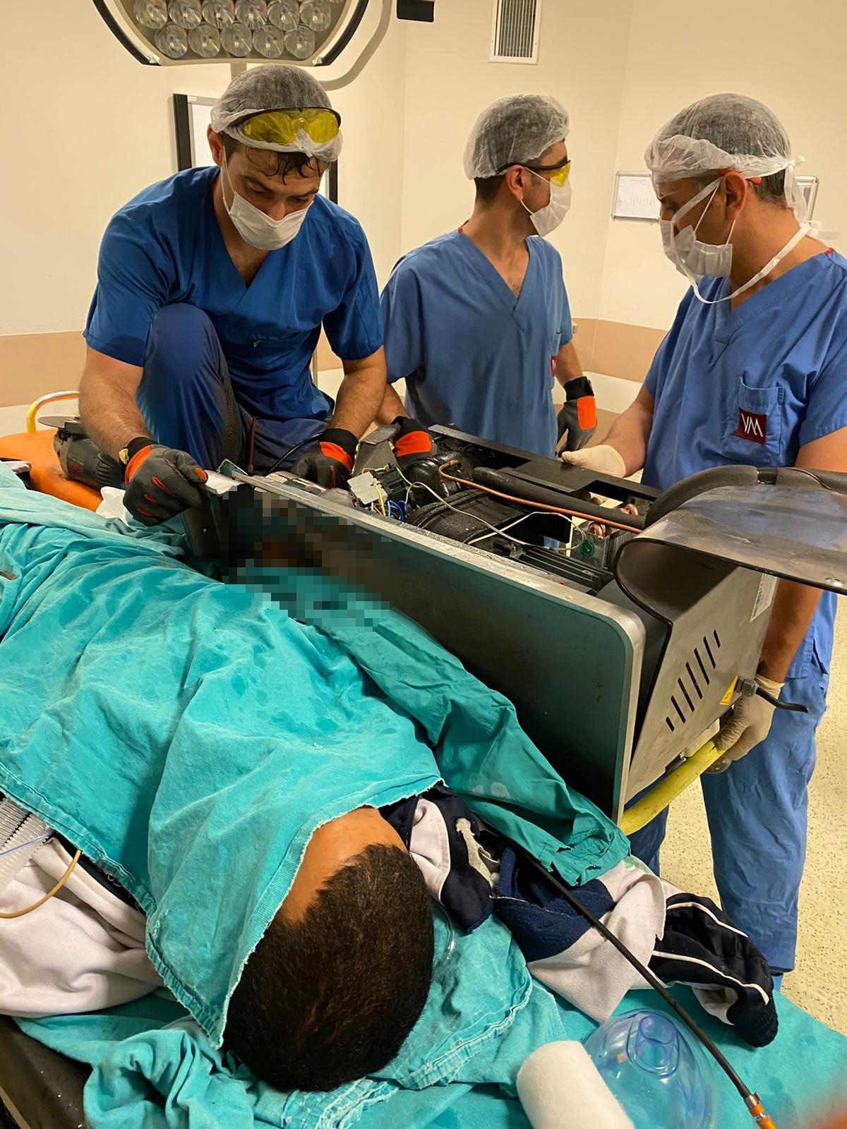 4 parmağının ezilerek parçalandığını gören doktorlar durumu itfaiye ekiplerine bildirdi. Kocaeli Büyükşehir Belediyesi İtfaiye Dairesi Başkanlığı ekipleri hastaneye sevk edildi. Ameliyathanede görev yapacakları için itfaiye ekiplerine de ameliyat kıyafetleri giydirildi. Doktorlar, itfaiye ekiplerinin gelmesiyle birlikte operasyona başladı.