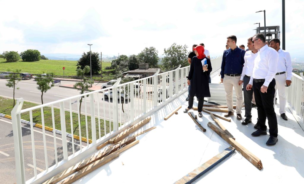 Başkan Büyükakın, İzmit ilçesi Kabaoğlu Mahallesi Prof. Baki Komsuoğlu Caddesi’ne inşa edilen yaya üst geçidinin geldiği son durumu yerinde inceledi.