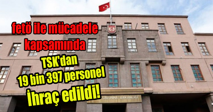 MSB’den FETÖ ile mücadele kapsamında 1″5 Temmuz 2016’dan bugüne TSK’dan 19 bin 397 personel ihraç edildi,5 bin 34 personel hakkında adli, idari süreç devam ediyor” açıklaması yapıldı.