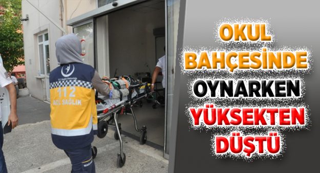 Gölcük’te okul bahçesinde oynarken yüksekten düşen 8 yaşındaki çocuk ağır yaralandı.Hastanede tedavisi süren Fatih N.’nin durumunun ağır olduğu öğrenildi.