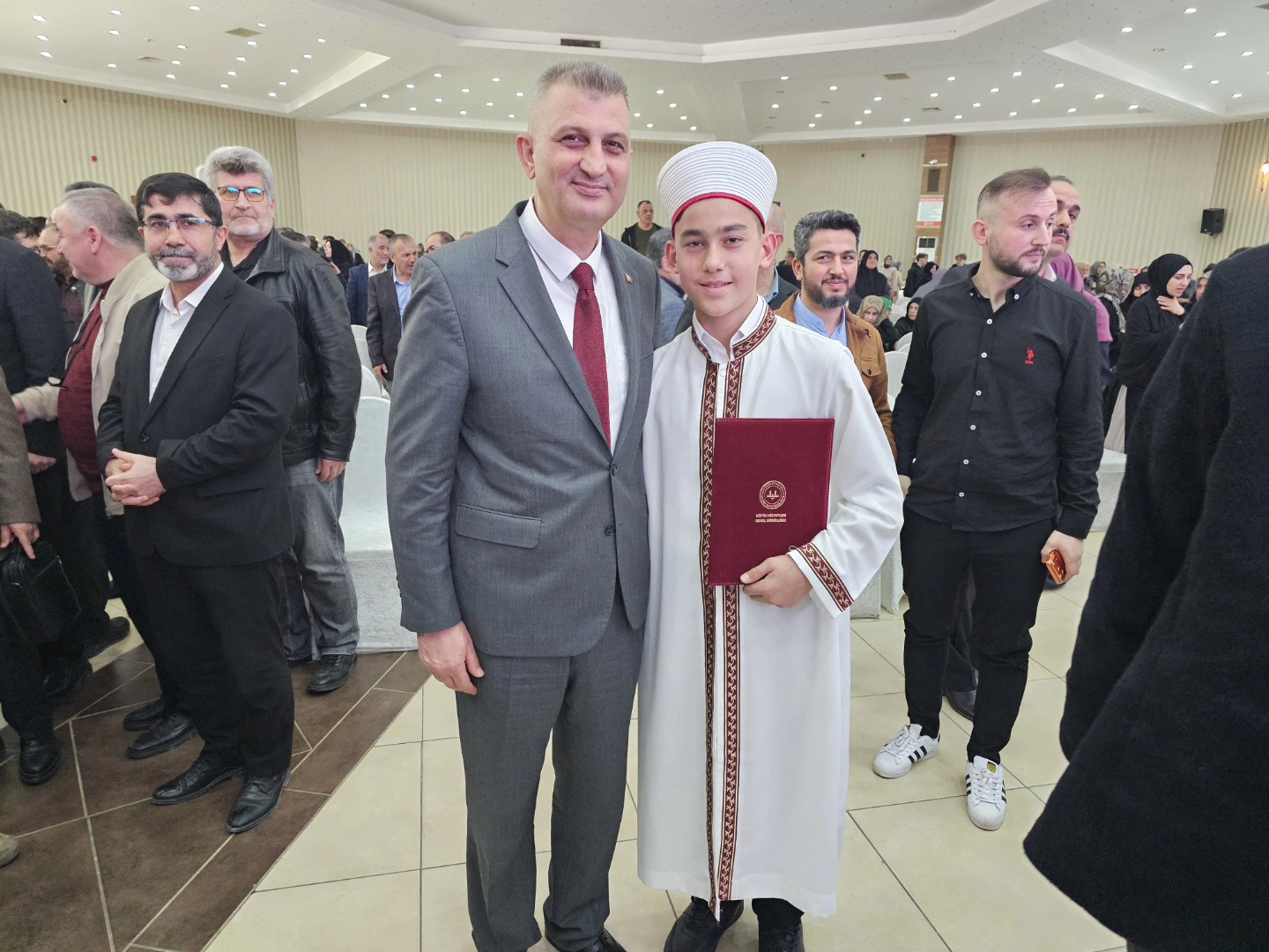 Eyüp Sultan Hafızlık İmam Hatip Ortaokulu bünyesinde eğitimlerini tamamlayan öğrencilerin ailelerinin duygusal anlar yaşadığı merasim, Vali Aktaş, Kaymakam Gültekin ve Başkan Sezer başta olmak üzere davetliler tarafından genç hafızlara icazet belgelerinin ve hediyelerinin takdim edilmesiyle sona erdi. Tören, toplu fotoğraf çekiminin ardından tamamlandı.