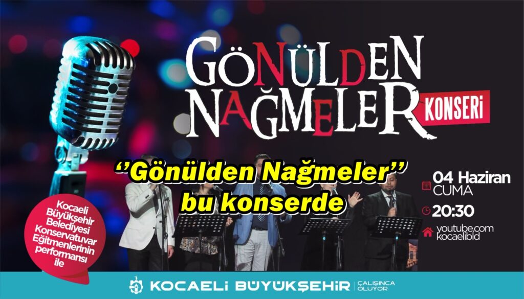 Kocaeli Büyükşehir Belediyesi Kültür Sanat ve Konservatuvar Şube Müdürlüğü, pandemi döneminde gerçekleştirdiği ve büyük beğeni gören konserlerine devam ediyor. Konservatuvar Şube Müdürlüğü eğitmenleri şimdi de Türk Sanat Müziğinin en sevilen şarkılarını seslendirecek. “Gönülden Nağmeler” konseri 4 Haziran Cuma akşamı youtube üzerinden yayınlanacak.