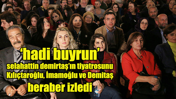 Açıklamaların ardından salona giren Kılıçdaroğlu, İmamoğlu ve Demirtaş alkışlarla salona girdi. Tiyatro gösterimi ilk olarak Selahattin Demirtaş’ın konuşmasından alıntılarla başladı. HDP’liler alkışlarla Selahattin Demirtaş’ın sesini dinledi. Demirtaş’ın konuşmasının ardından tiyatro gösterimi başladı. 1 saat 5 dakika süren gösterimin ardından “çav bella” şarkısı seslendirildi. İzleyiciler ise alkışlarla eşlik etti. Daha sonra kürsüye çıkarak izleyicileri selamlayan Başak Demirtaş, duygulandığını belirterek “Gösterim harikaydı. Çok hüzünlüydü. Çok güzel bir gösteriydi. Dayanışma; umut, moral, güç verir. Tiyatroyla, sanatla olunca çok değişik duygular yaşattı. Emeği geçen herkese çok teşekkür etmek istiyorum. Buraya gelenlere de çok teşekkür ediyorum. Gelecek güzel günlerde umudu büyütmeye vesile oldunuz. Çok teşekkür ediyorum” ifadelerini kullandı. Konuşmasının ardından salondakilere sürprizi olduğunu söyleyen Başak Demirtaş, Selahattin Demirtaş’ın konuşma kaydını seyircilere dinletti. Salondaki izleyicilere seslenen Selahattin Demirtaş, “Salonda bulunan bulunmayan herkese çok teşekkür ediyor, selamlar söylüyorum. Emek veren herkesin eline emeğine sağlık” dedi.