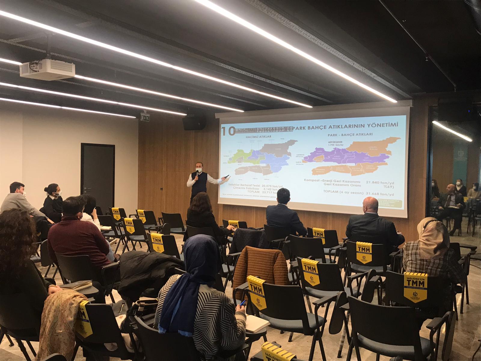 Sıfır Atık Şube Müdürü Hüseyin Kılıç ise atıkların türlerine göre kaynağında ayrı toplanması çalışmalarında, ikili toplama sistemine geçişlerin öncelikli olarak alışveriş merkezleri, lokanta, sanayi bölgeleri gibi uygun alanlarda kurulması ve yaygınlaştırılması gerektiğini vurguladı. Hacimli atıklar (mobilya, yatak, koltuk vb.) ile park ve bahçe atıklarının (dal, budak ve çim atıkları) değerlendirilmesine yönelik çalışmaların işbirliği içerisinde yürütülmesi gerektiğini vurgulayan Kılıç, evlerden kaynaklanan ilaç atıklarının yönetimine dair yapılması planlanan çalışmalar, akıllı şehir uygulamaları kapsamında yapılabilecek örnek uygulamalar özelinde bilgi paylaşımında bulundu. Kılıç, öğrencilerin küçük yaşta geri kazanım konusunda bilinçlenmesine katkı sağlamak maksadıyla İl genelindeki tüm anaokullarına atık ayrıştırma oyun setlerinin dağıtıldığı bilgisini de aktardı.