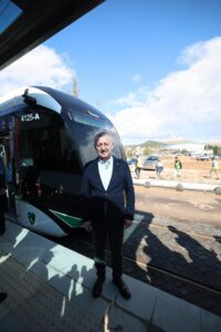 Kocaeli Büyükşehir Belediyesi kent genelindeki tramvay ağını genişletmeye devam ediyor. Şehir içi ulaşımda konforlu ve kesintisiz bir sistem oluşturmayı hedefleyen Büyükşehir, Alikahya Stadyum Tramvay Hattı’nı da devreye aldı. Yapımı tamamlanan yeni tramvay hattındaki test sürüşünü Başkan Büyükakın yaptı. Büyükakın, taraftarların 14 Ekim Salı günü Gürcistan ile oynanacak milli maça tramvayla gideceğini söyledi, hattın Kartepe’ye de uzatılacağını müjdeledi.