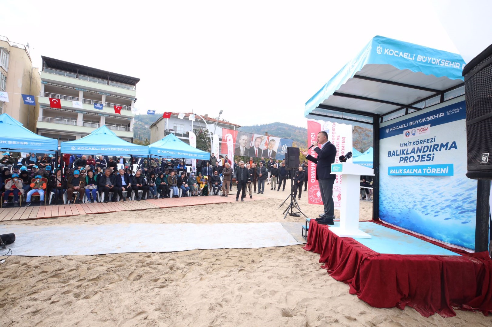 Doğaya ve canlılara değer vererek yatırımlarını hayata geçiren Kocaeli Büyükşehir Belediyesi, İzmit Körfezi Balıklandırma Projesi kapsamındaki balık salma çalışmalarını sürdürüyor. Daha önce Körfez’in birçok sahilinde yapılan balık salma töreni bu kez Karamürsel Ereğli Sahilinde gerçekleştirildi. Kocaeli Büyükşehir Belediye Başkanı Tahir Büyükakın’ın katılımı ile yapılan törende 6 bin yavru balık denize salındı.