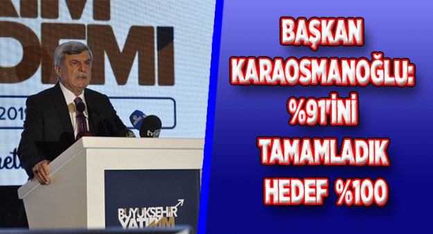 2014-2019 dönemi yatırım gündemine ilişkin gerçekleştirdiği programda konuşan Büyükşehir Belediye Başkanı İbrahim Karaosmanoğlu, “Hali hazırda devam edenlerle birlikte, vaatlerimizin çok şükür % 91’i tamamladık. Önümüzde 1 yıl var. Hedefimiz, vaatlerimizin % 100’ünü tamamlamak” dedi.