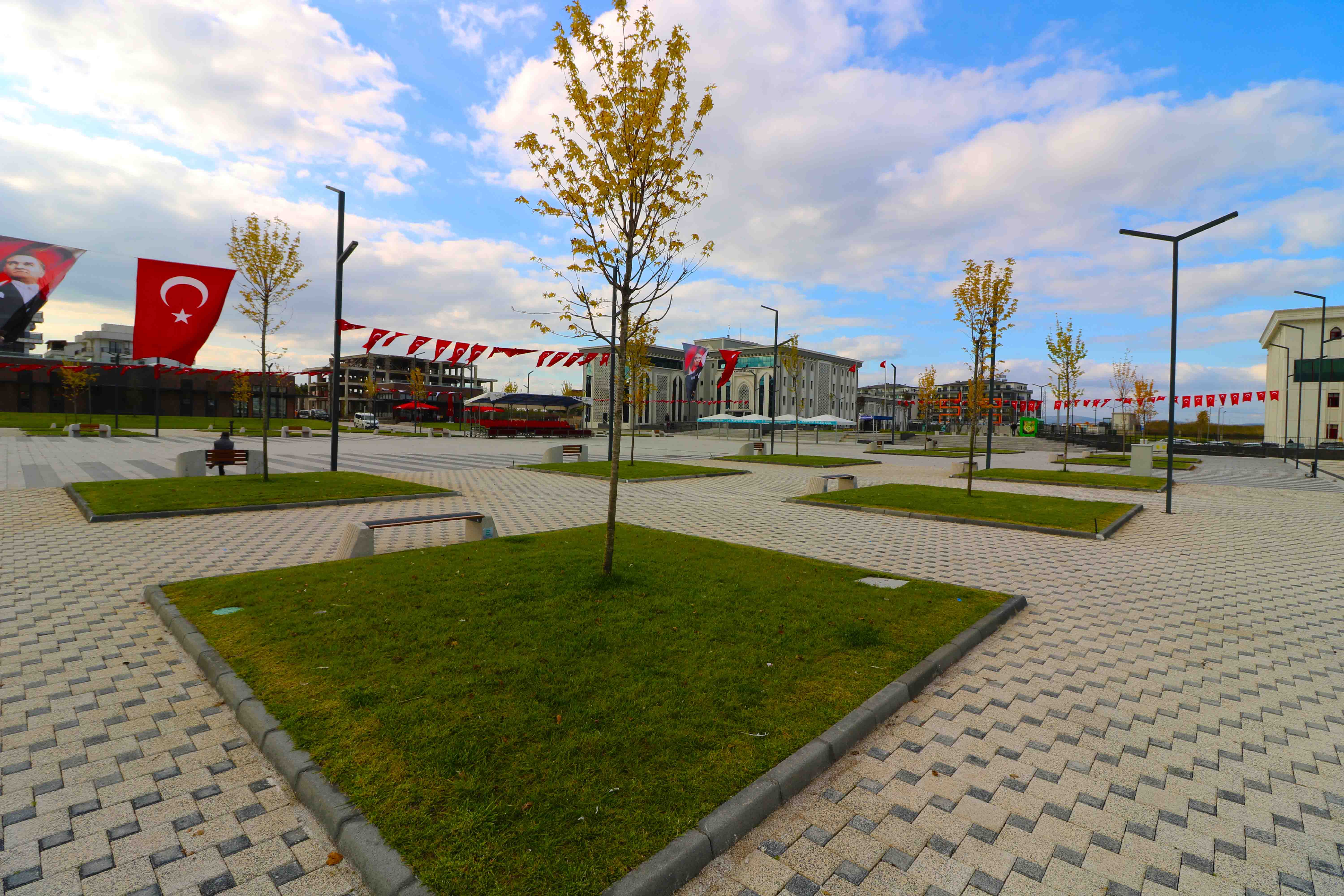 Büyükşehir tarafından inşa edilen Kartepe Kent Meydanı, yeni şehir mobilyaları olan kentsel donatı elemanlarıyla daha da güzel hale geldi