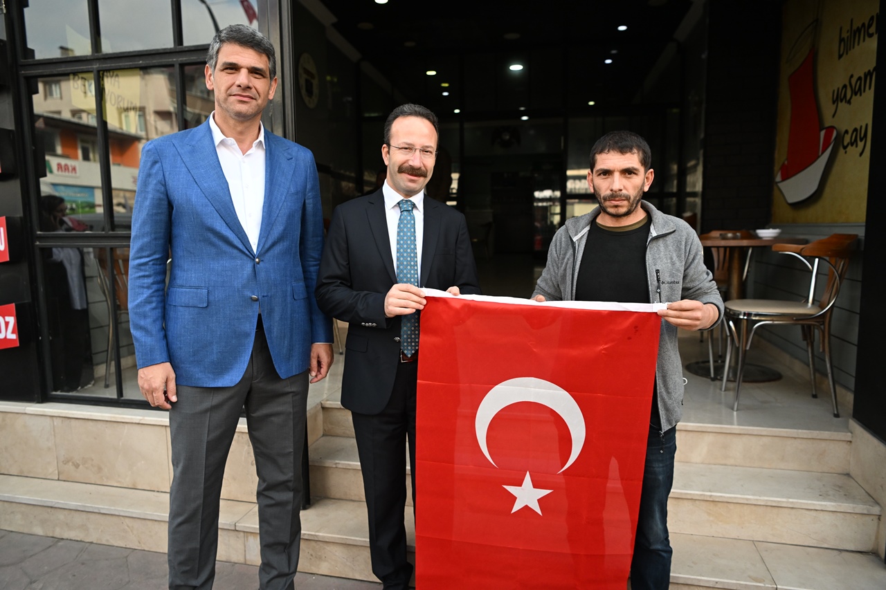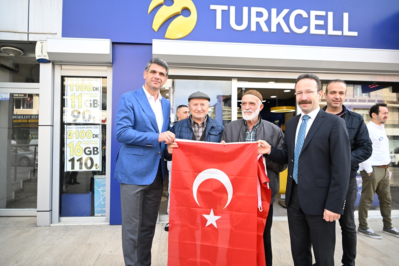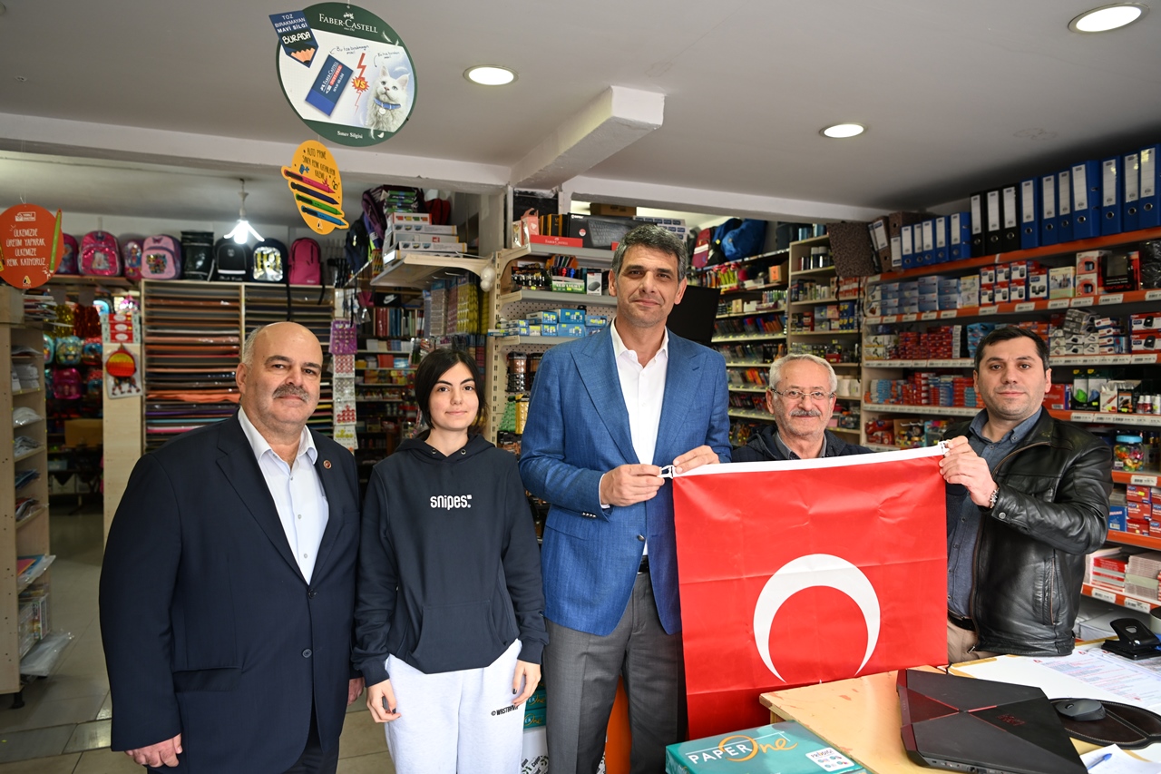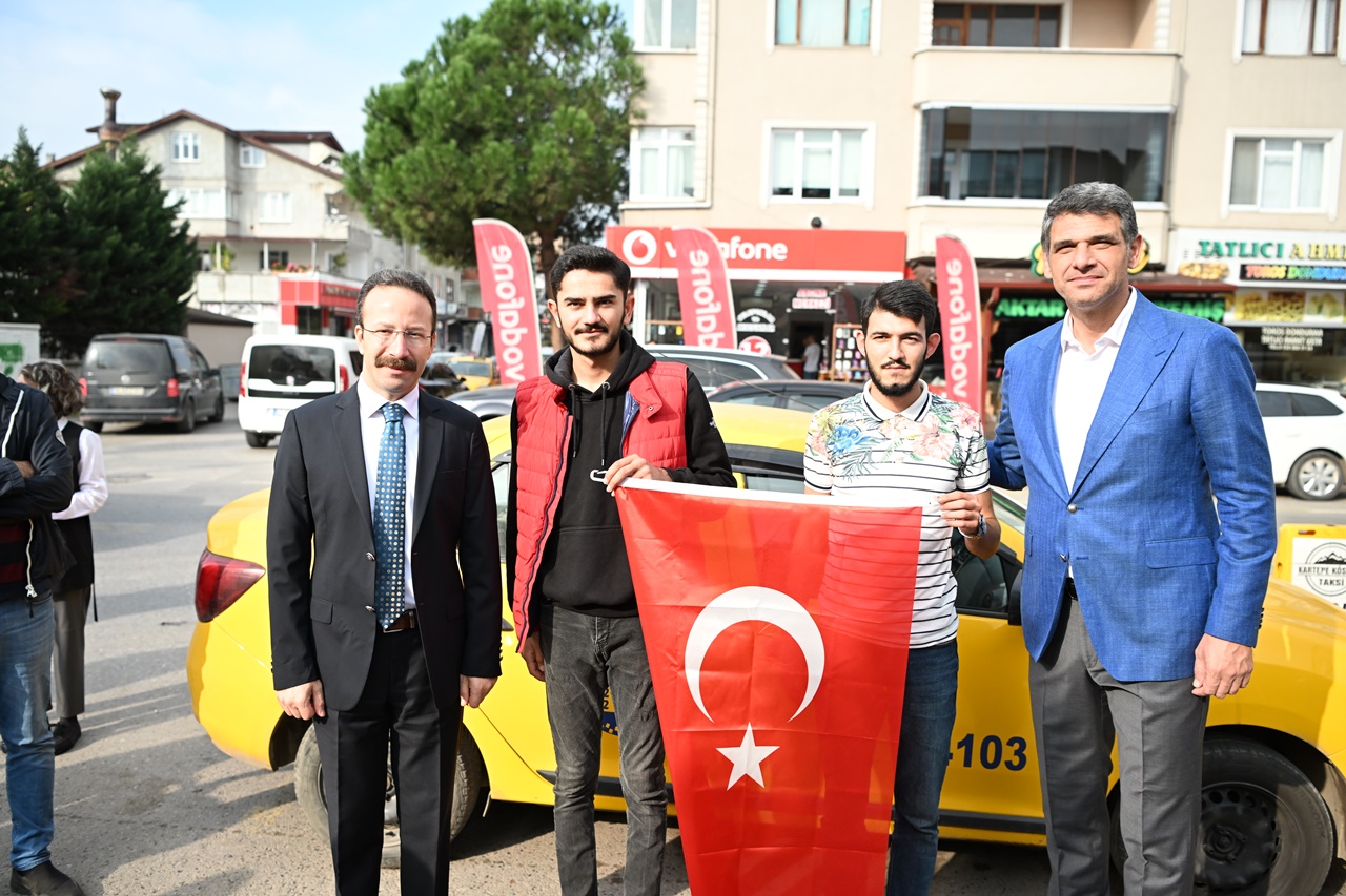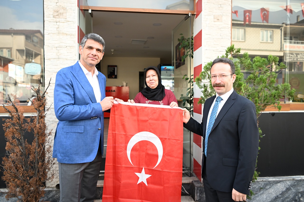 Kartepe Kaymakamı Ömer Hilmi Yamlı ve Kartepe Belediye Başkanı Av.M.Mustafa Kocaman öncülüğünde belediye başkan yardımcıları, birim müdürleri ve meclis üyeleri Kartepeli esnaflara ve vatandaşlara Türk Bayrağı dağıttı.