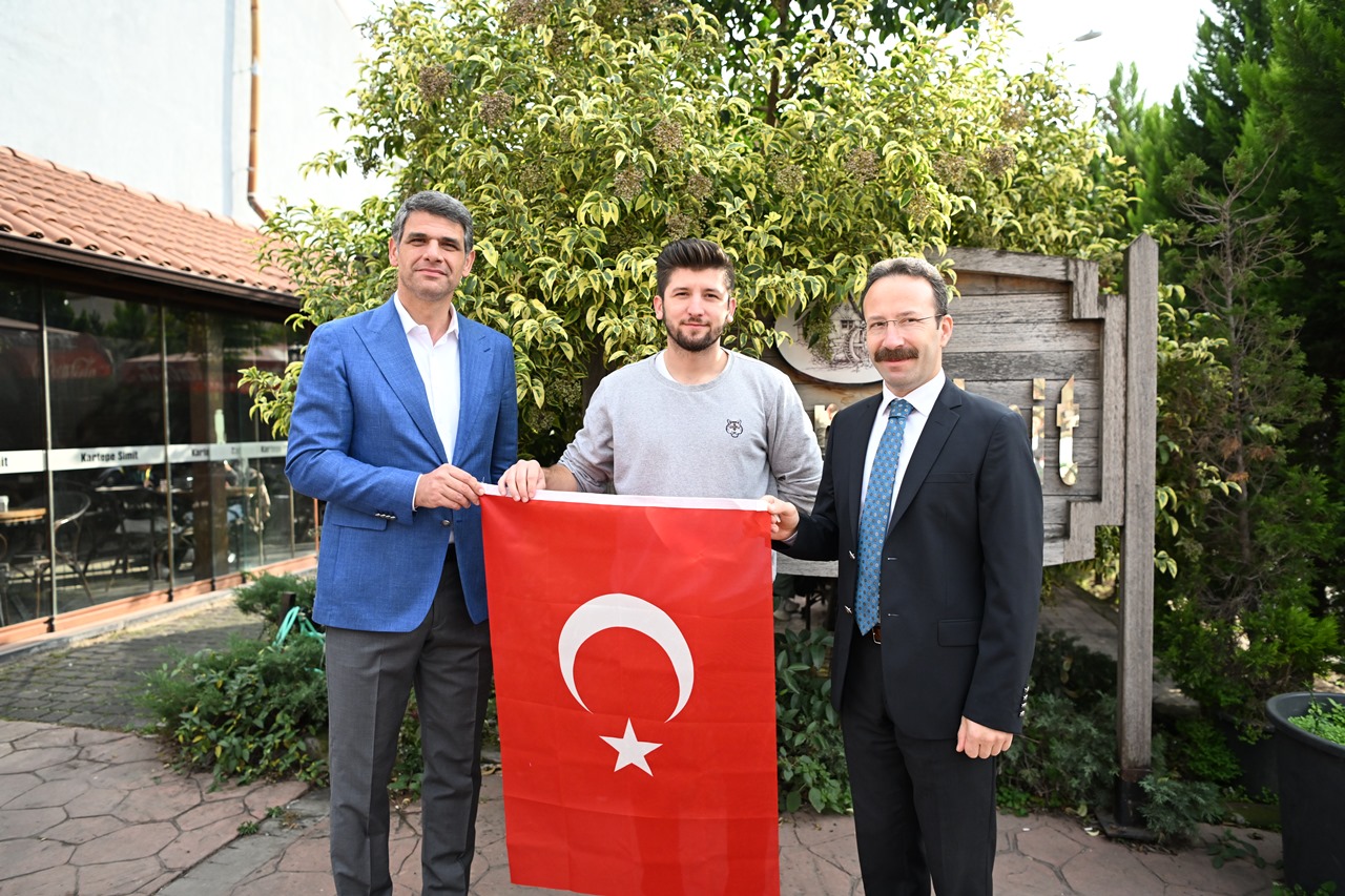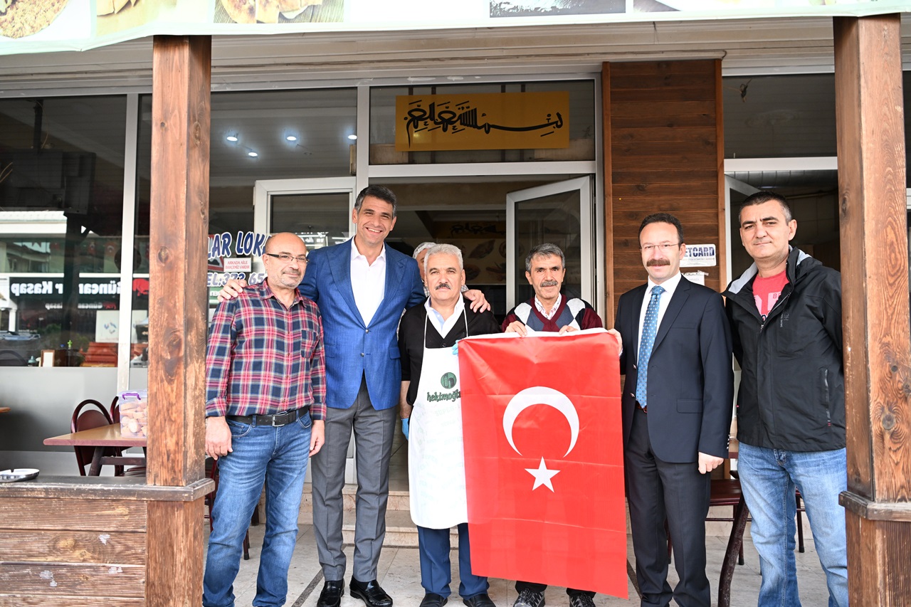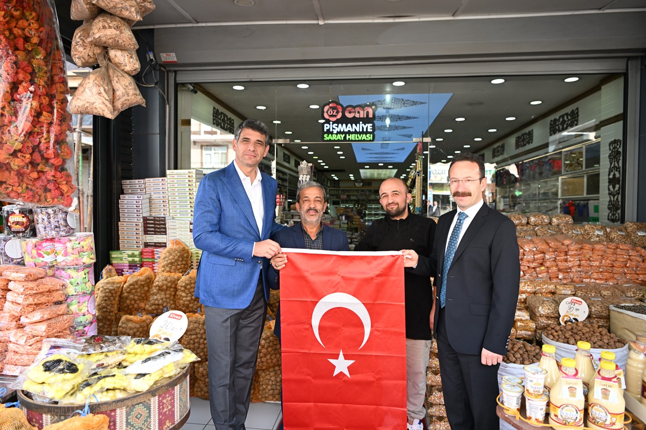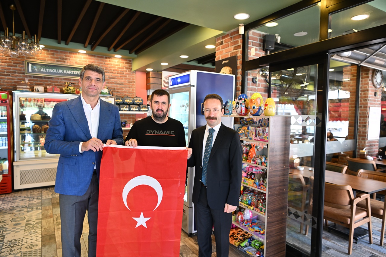 Kartepe Kaymakamı Ömer Hilmi Yamlı ve Kartepe Belediye Başkanı Av.M.Mustafa Kocaman öncülüğünde belediye başkan yardımcıları, birim müdürleri ve meclis üyeleri Kartepeli esnaflara ve vatandaşlara Türk Bayrağı dağıttı.