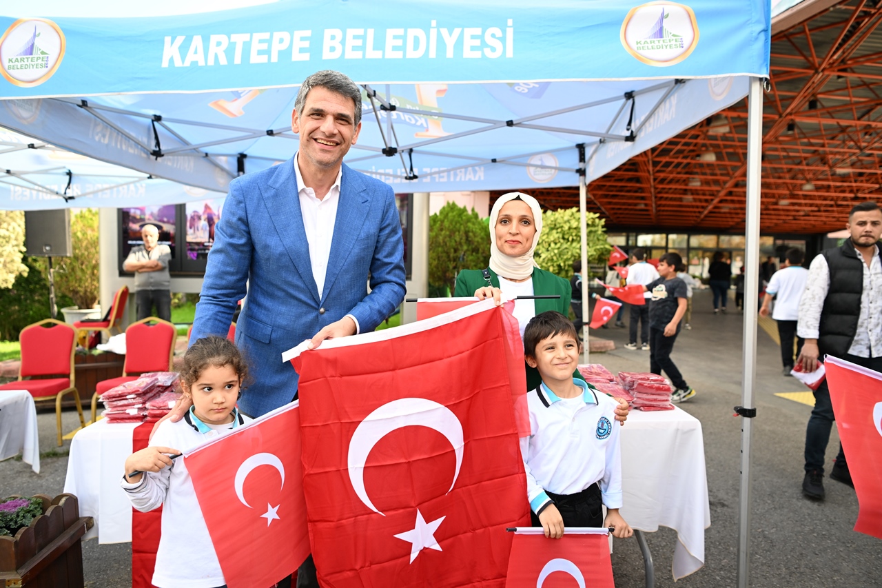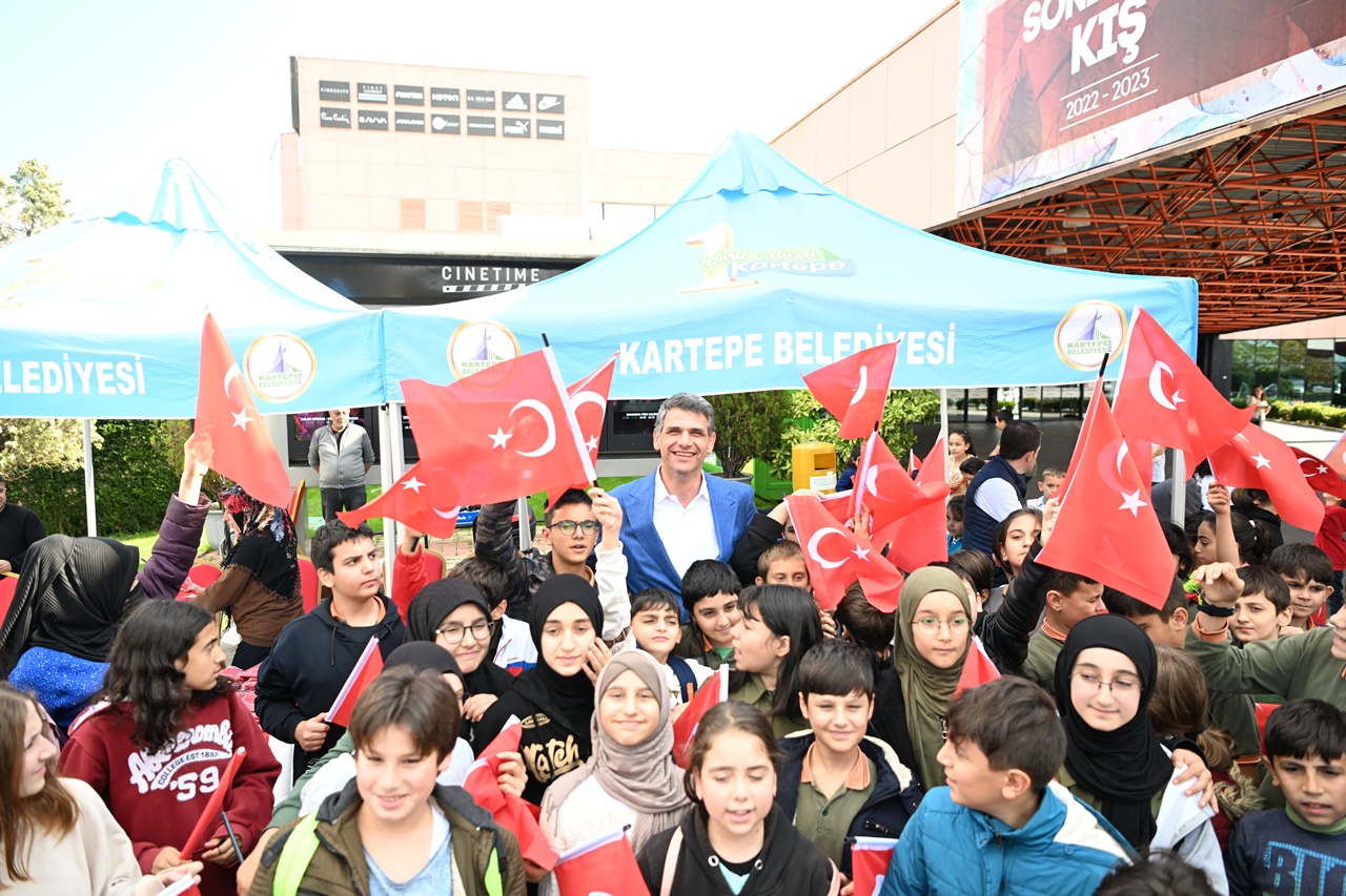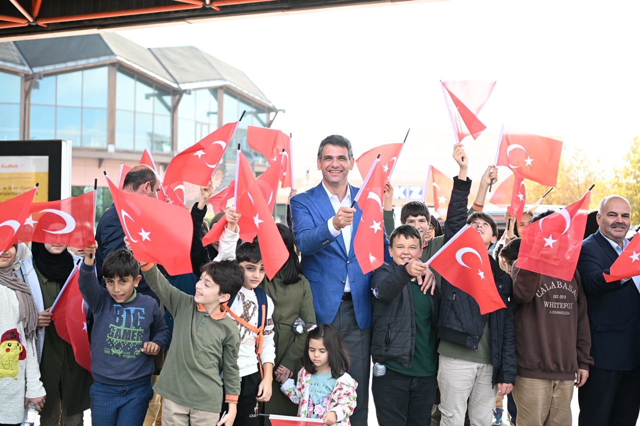 Başkan Kocaman daha sonra, öğrencilerle bir araya gelerek Cumhuriyet coşkusunu Türk Bayrağı ve çalan kahramanlık marşlarıyla birlikte kutladı. Kartepe genelinde 99.yıla özel 10 bin Türk Bayrağı dağıtıldı.