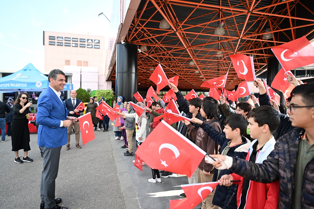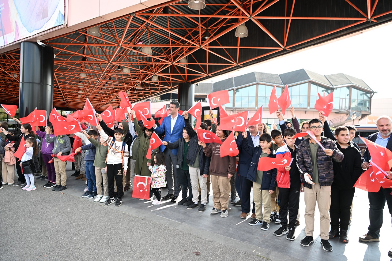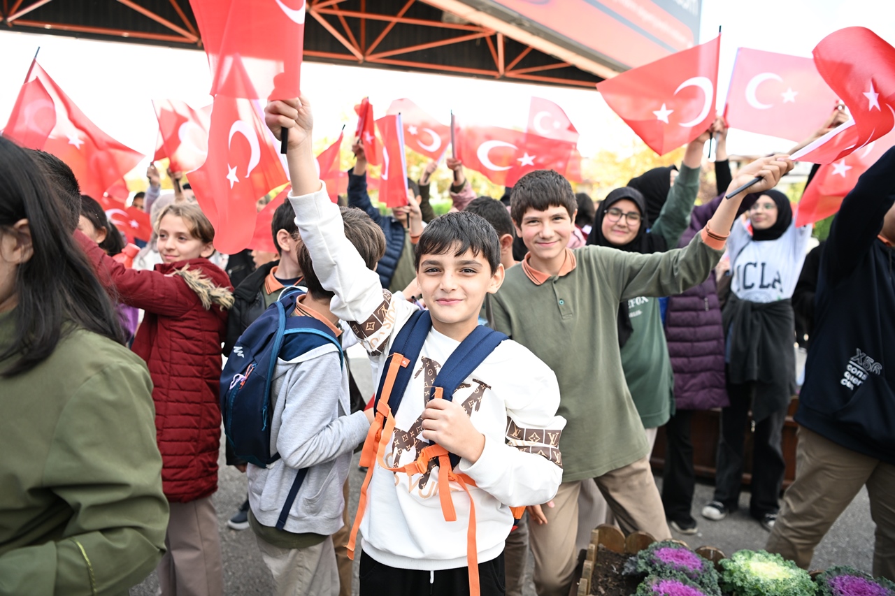Başkan Kocaman daha sonra, öğrencilerle bir araya gelerek Cumhuriyet coşkusunu Türk Bayrağı ve çalan kahramanlık marşlarıyla birlikte kutladı. Kartepe genelinde 99.yıla özel 10 bin Türk Bayrağı dağıtıldı.