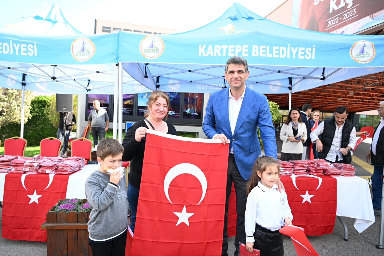 29 Ekim Cumhuriyet Bayramı’nın 99.yıl coşkusu Kartepe’de erken başladı. Kartepe Belediyesi Cumhuriyet Bayramı kutlamalarını esnaf ve vatandaşlara şanlı Türk Bayrağımızı dağıtarak taçlandırdı.