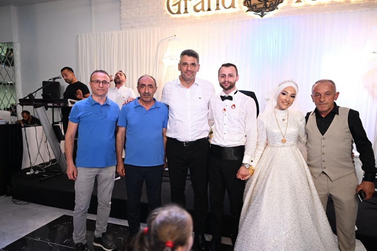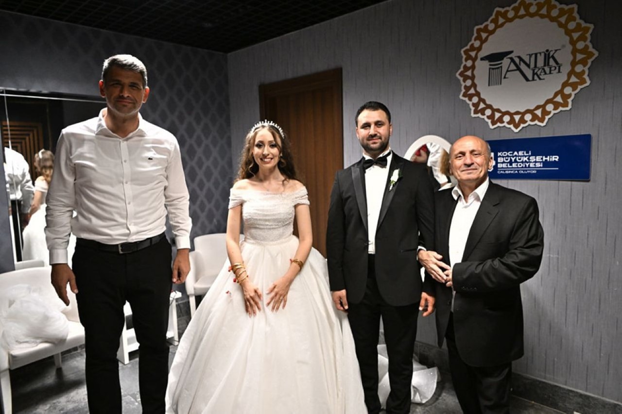 Kartepe Belediye Başkanı Av.M.Mustafa Kocaman, Sümeyye Kibar ile Talha Can Özcan çiftinin düğün cemiyetine katıldı. Genç çifti tebrik eden Başkan Kocaman hediyesini verdi.