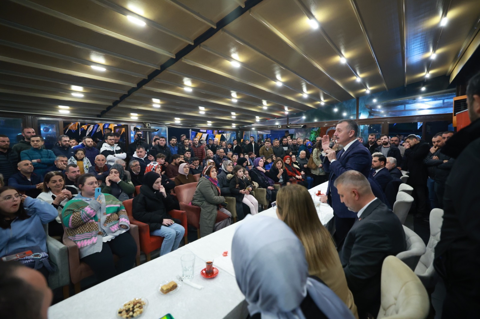 Gençler salona sığmazken, Kavaklı sahilinde büyük bir kalabalık ve coşku vardı. Gençler Büyükşehir Belediye Başkanı Tahir Büyükakın’a, ‘Kocaeli’nin şansı, Büyük başkan, desteğimiz seninle, seni Allah için seviyoruz başkanım” tezahüratlarında bulundular.