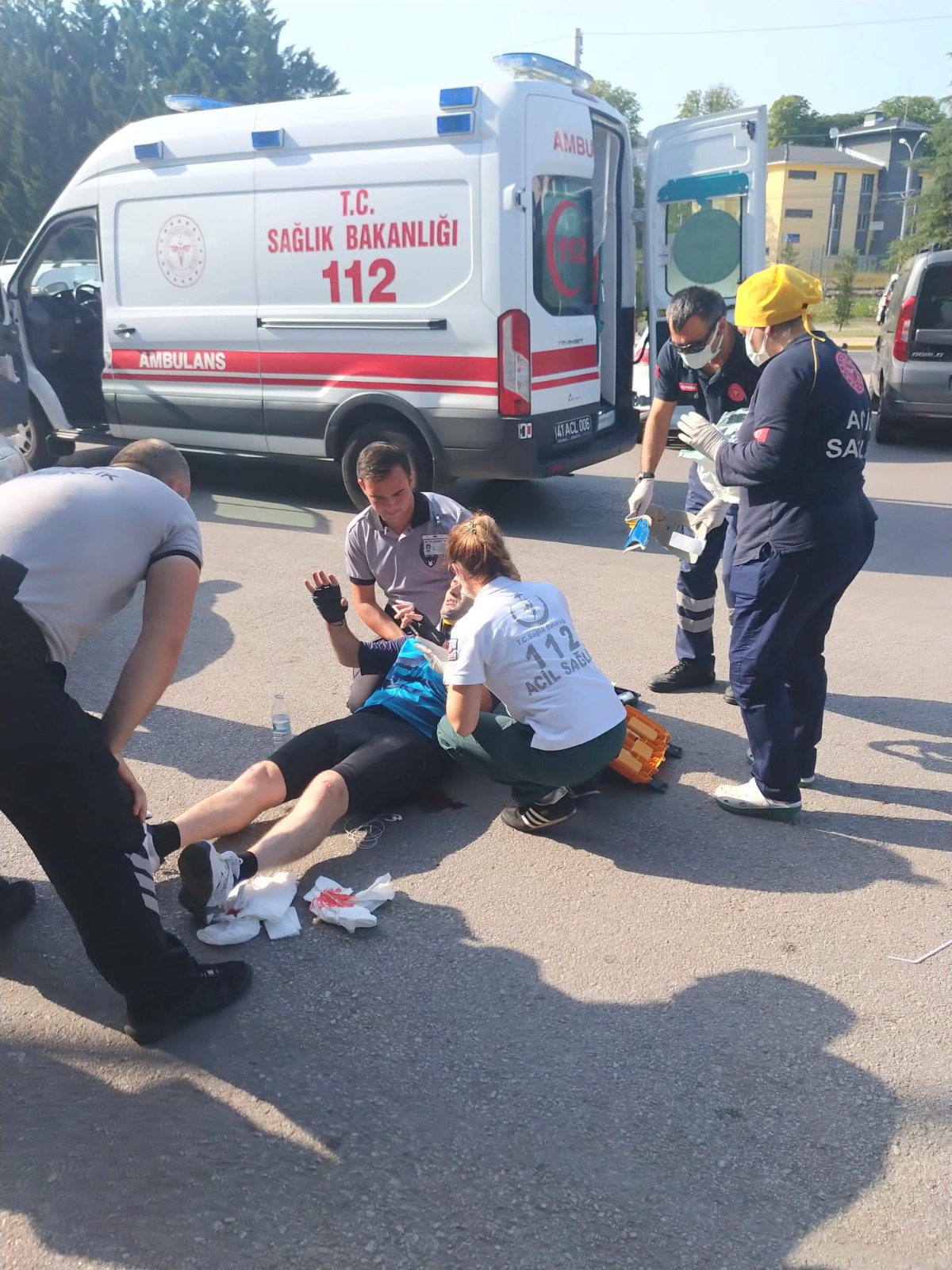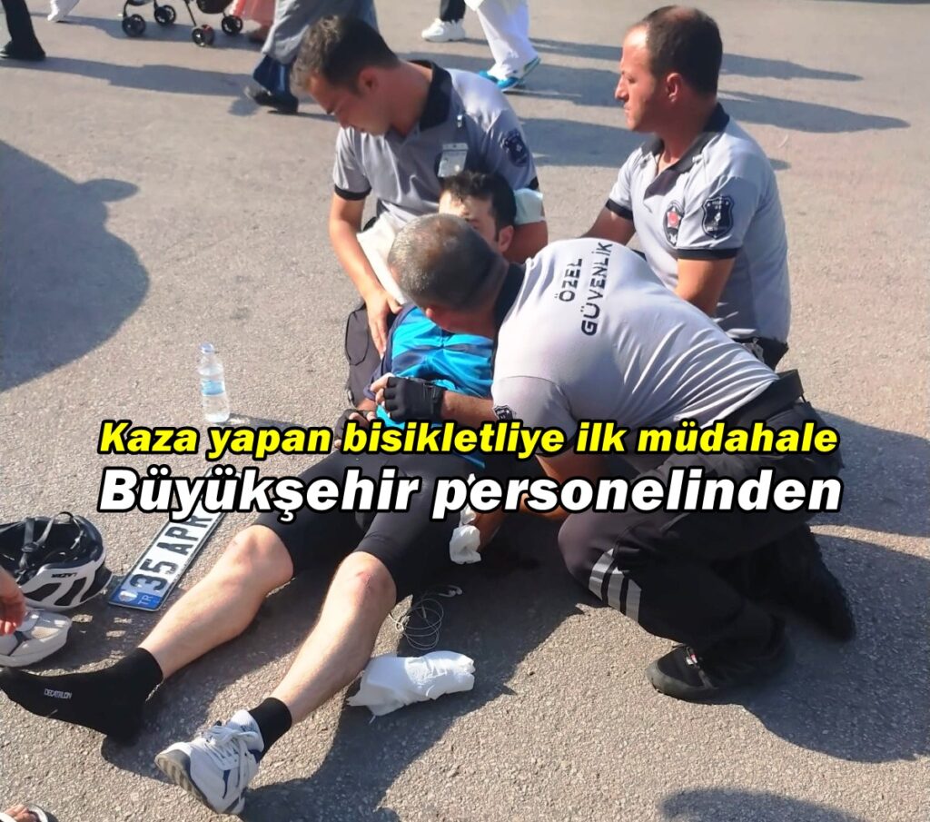 İzmit Sekapark’ta otomobil ile kazan yapan bisikletli sürücü Ömer Kaplan’a ilk müdahaleyi, Büyükşehir Belediyesi güvenlik personelleri gerçekleştirdi.