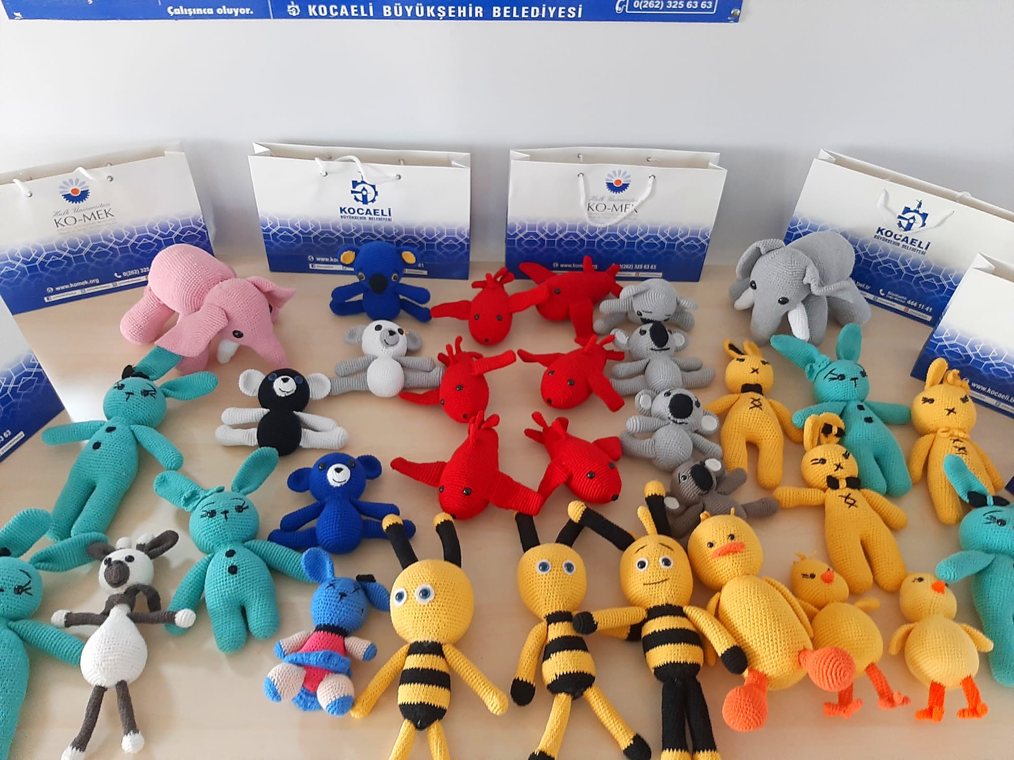 KO-MEK kursiyerleri Derince Eğitim Araştırma Hastanesi’nde çalışan sağlık çalışanlarının çocuklarına amigurumi oyuncak hediye etti.